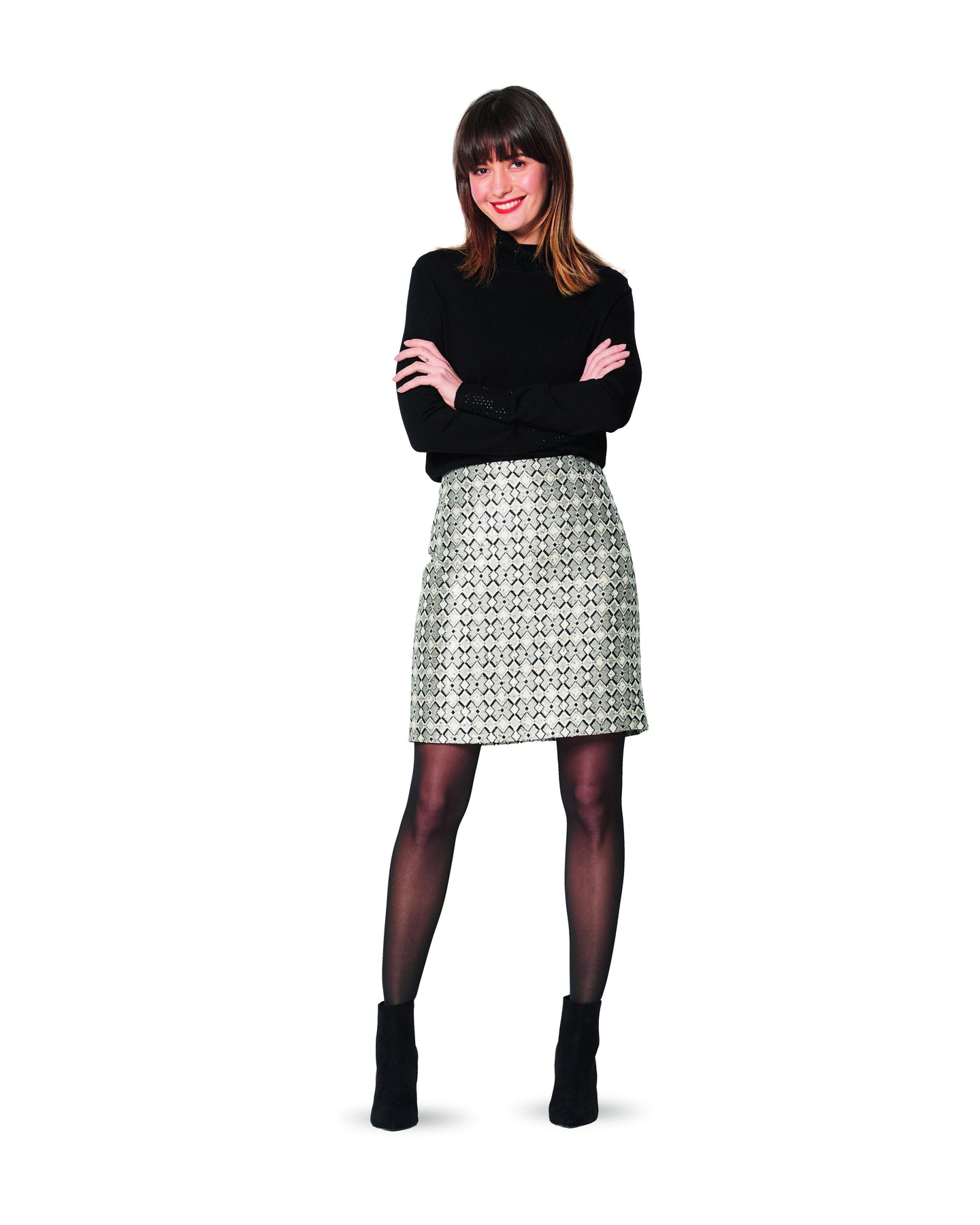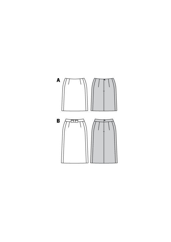 Feminine Basic-Röcke, perfekt im Sitz. Sie können durch Abnäher und seitl. Teilungsnähte an jede Figur angepasst werden und haben immer eine streckende Wirkung. Das Futter sogt zusätzlich für guten Fall. Zwei Längen, mit oder ohne Bund, stehen zur Verfügung. Die Schleife bei Rock B ist schmückendes Element.