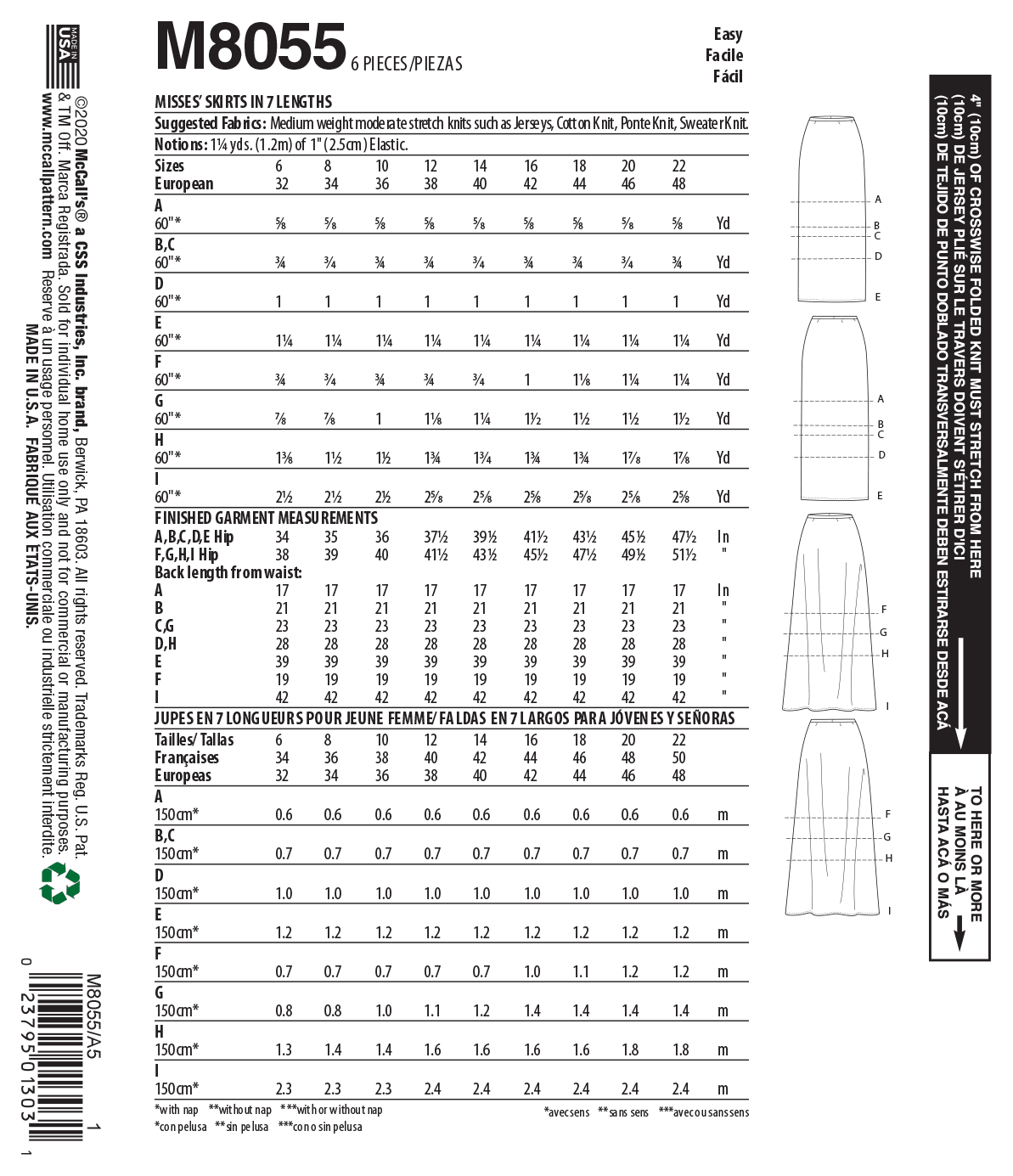 McCalls Schnittmuster M8055 Damen Hose/Rock