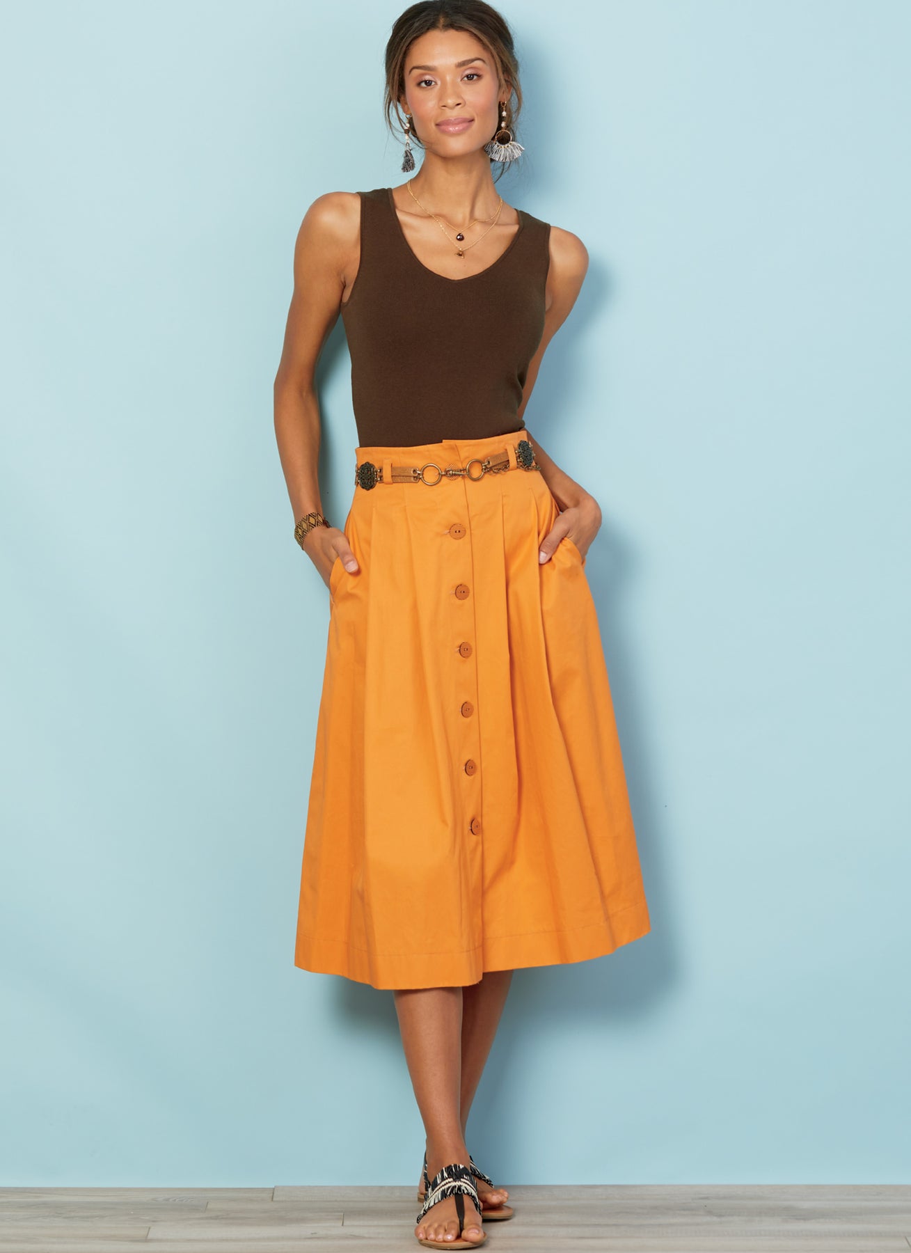 Ein Rock für die reifen Frauen, aussagekräftig durch die Länge und viele Falten. Die Knopfleiste an der Vorderseite ist der absolute Hingucker.