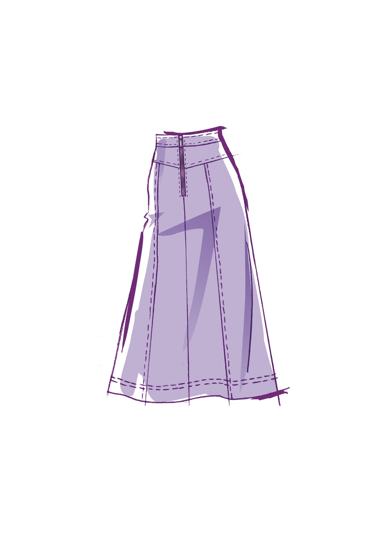 Röcke für Damen in zwei Längen haben eine Passe und optionale Taschen. Hoch taillierte Röcke in A-Linie besitzen Saumdetails und einen sichtbaren Reißverschluss in der vorderen Mitte.