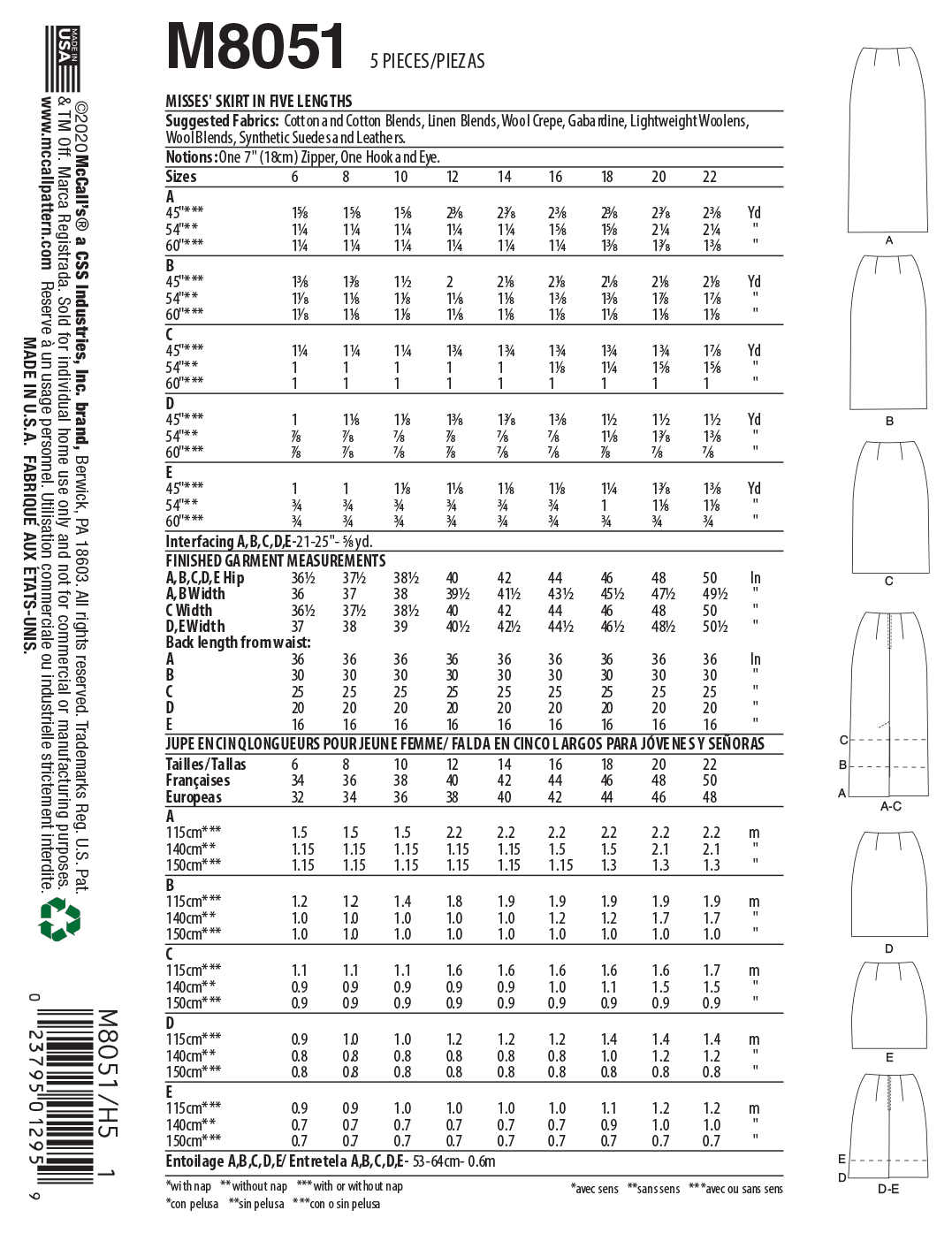 McCalls Schnittmuster M8051 Damen Hose/Rock