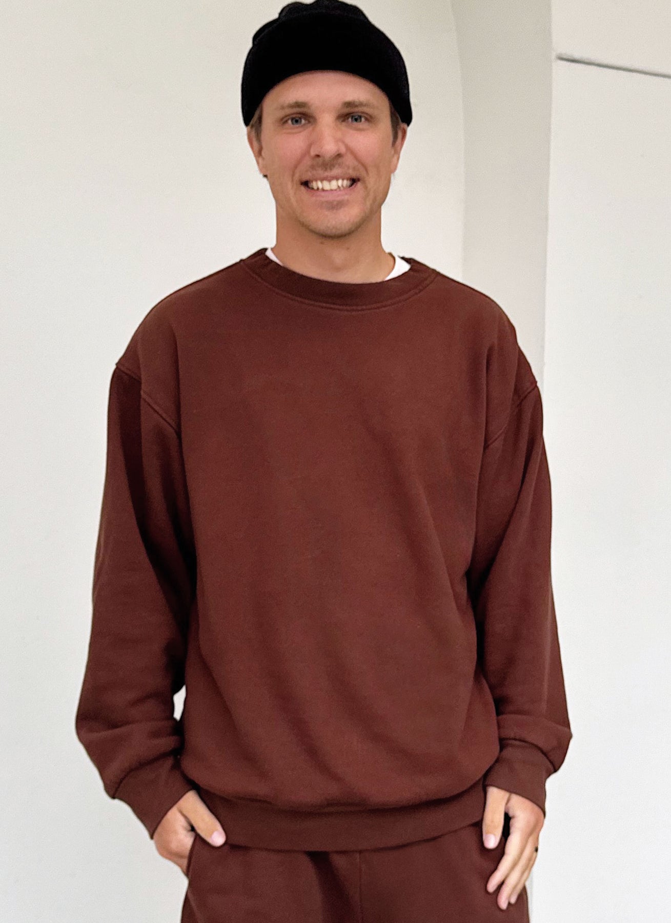 Die übergroßen Sweatshirts haben überschnittene Schultern, einen Stehkragen oder Rundhalsausschnitt und kontrastfarbene Rippstrickbündchen an Ausschnitt, Ärmeln und Saum. Die Shorts zum Hineinschlüpfen haben einen elastischen Bund und Seitentaschen.