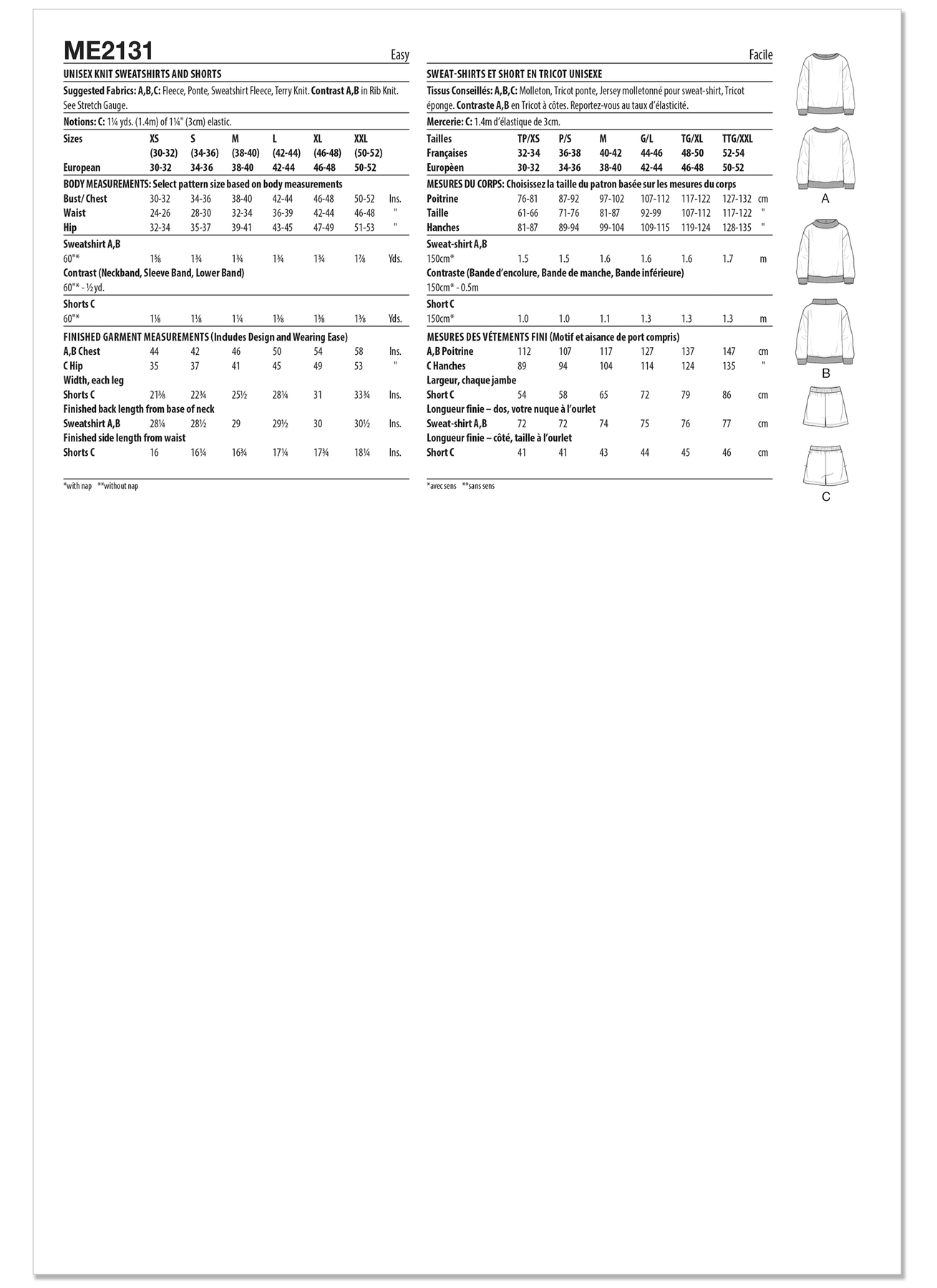 KnowMe Schnittmuster ME2131 Unisex-Strick-Sweatshirts und Shorts von Alissah Threads
