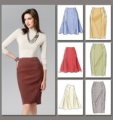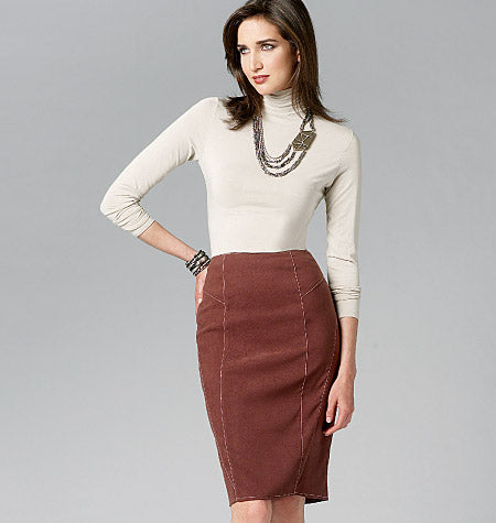 Gönnen Sie sich neue Röcke - mit Vogue Easy Options haben Sie die Option: zwei Modelle in drei Längen für maximale Flexibilität. Tragen Sie im Büro den anliegenden Bleistiftrock mit Wiener Naht und in der Stadt den ausgestellten Rock.