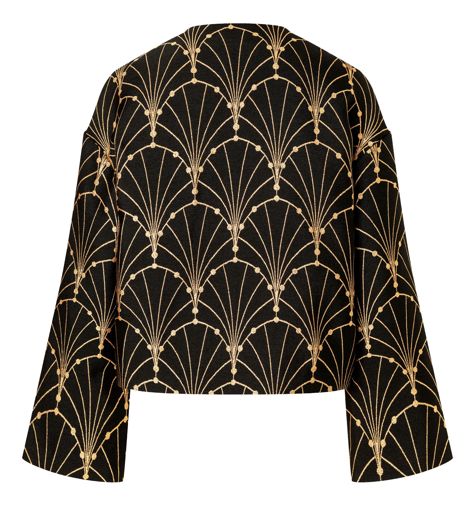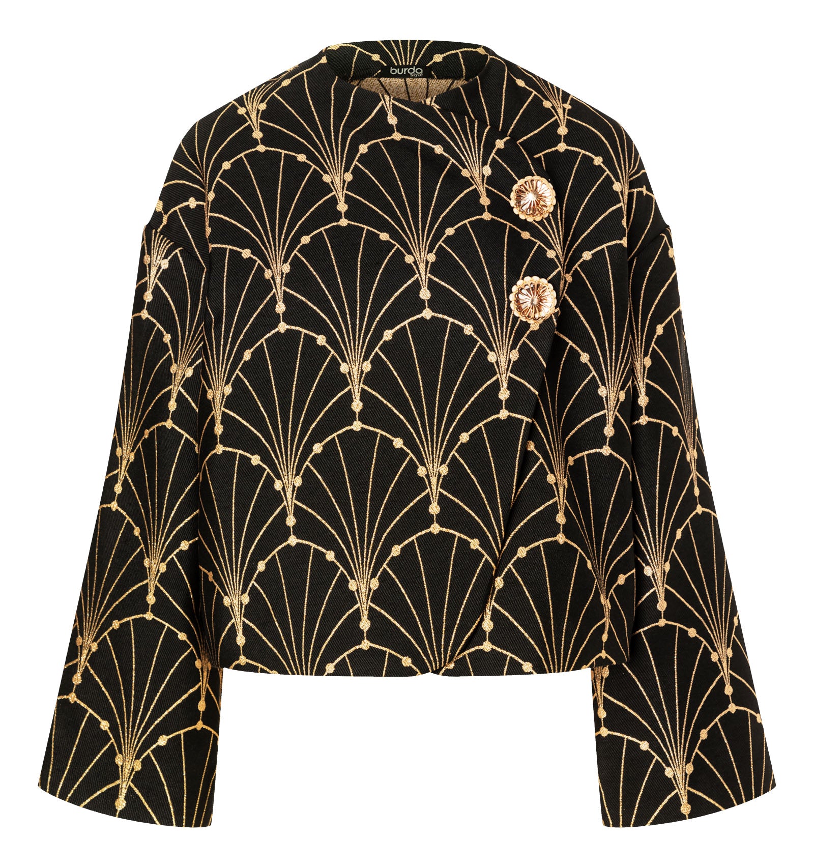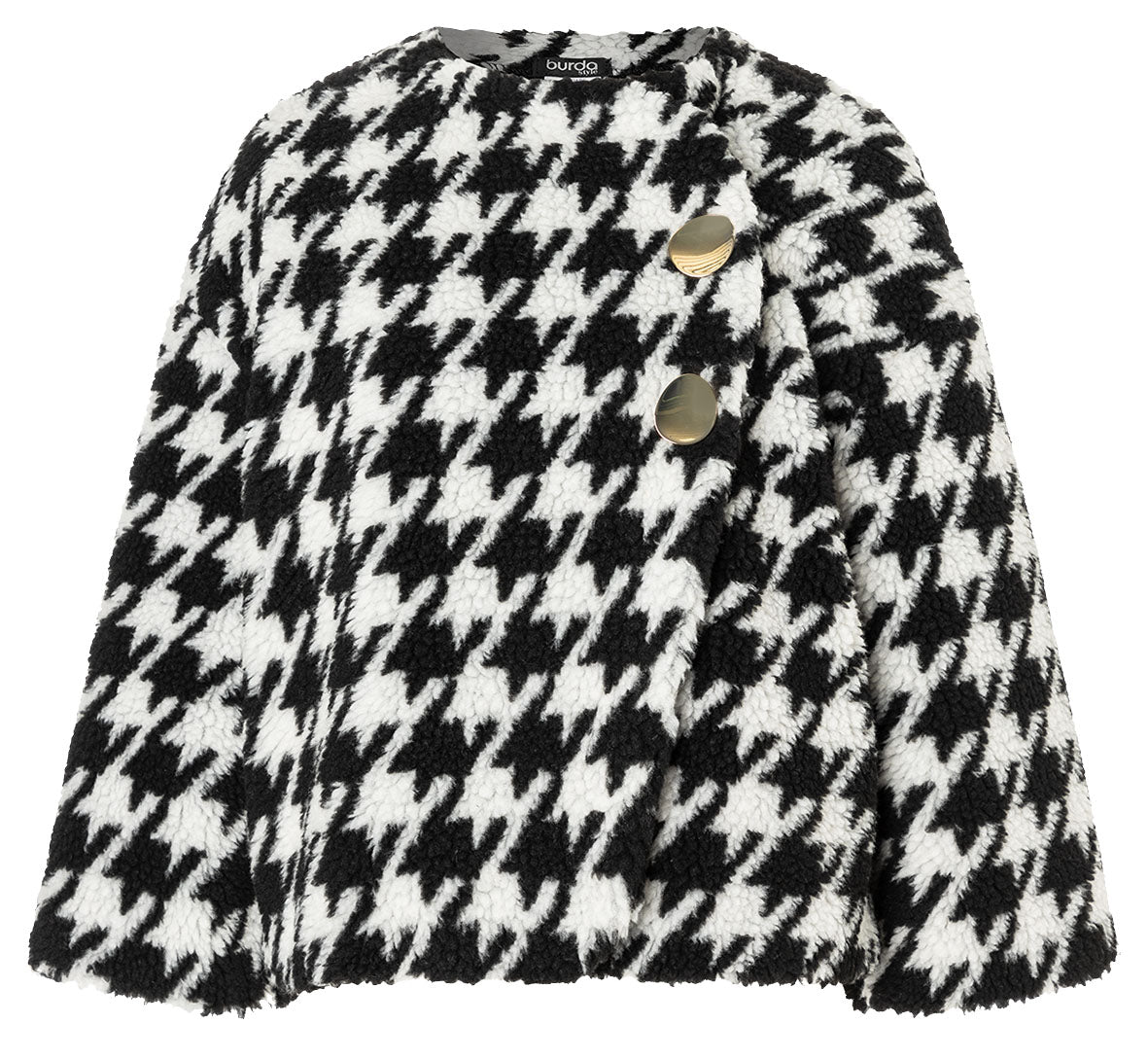 Entdecke dieses anfängerfreundliche Schnittmuster für bezaubernde Jacken: Ein klassisches Hahnentritt-Muster trifft auf trendigen Plüsch und große goldene Zierknöpfe für den perfekten Look. Die Jackebn-Variante mit edlem Art-Deco-Muster, schrägem Vorderteil und Annäh-Druckknöpfen ist perfekt für die Party. Verwandele mit einem längeren Schnitt aus Wolle diese Glamour-Jacke in eine lässige Manteljacke, mit oder ohne Bindegürtel. Stoffempfehlungen: Wollstoff, Jacquard und Teddyplüsch.