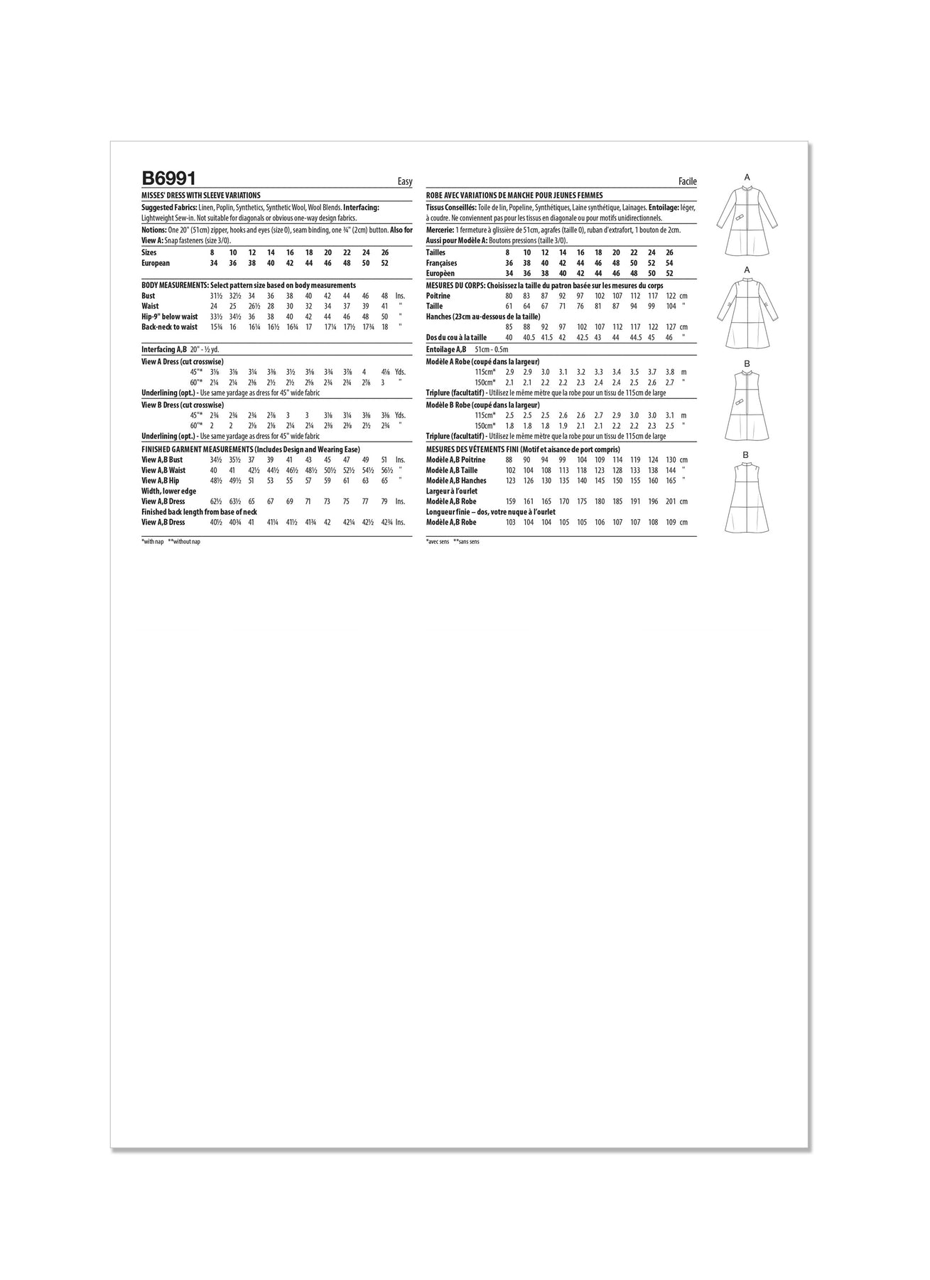 Stoffempfehlung:Leinen, Popeline, Synthetik, Synthetikwolle, Wollmischungen. Einlage: Leichtes Einnähen. Nicht geeignet für Querstreifen oder offensichtliche Einweg-Design-Stoffe.