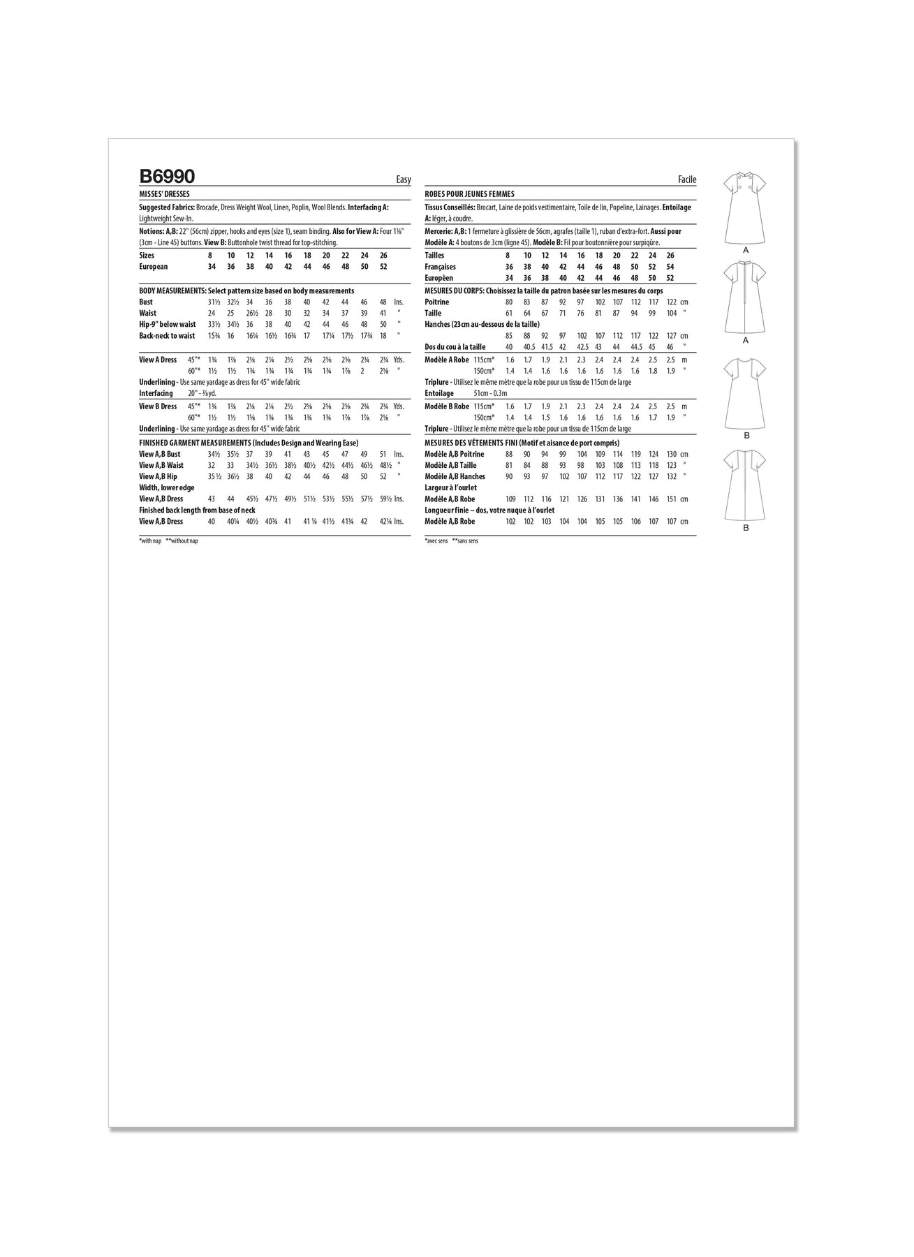 Stoffempfehlung:Brokat, Wolle in Kleidergröße, Leinen, Popeline, Wollmischungen. Einlage A: Leichtes Einnähen.