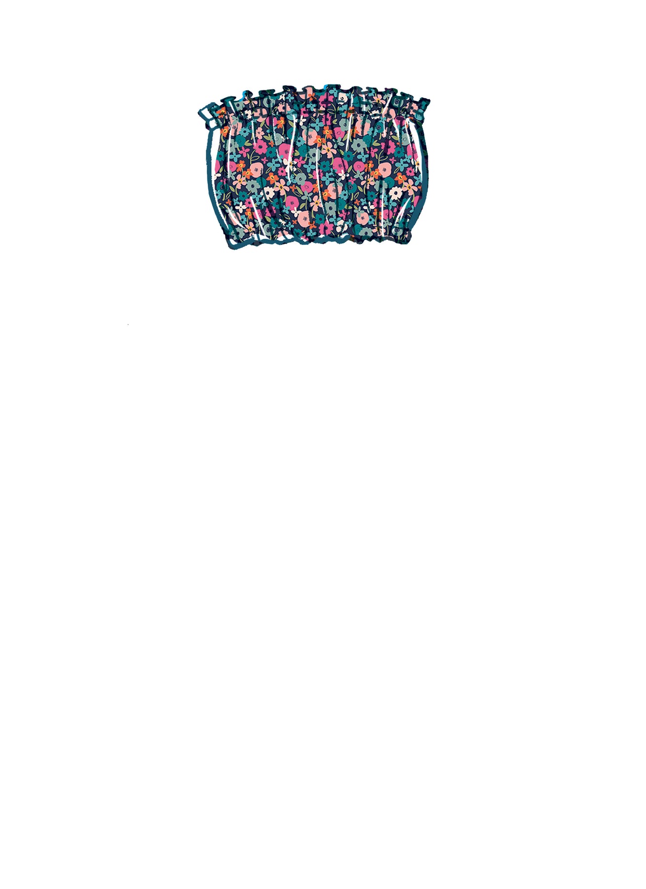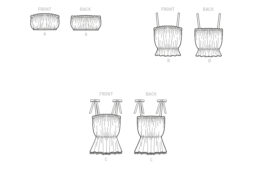 Elastische Oberteile für Damen in drei Längen. A: Bandeau-Länge.