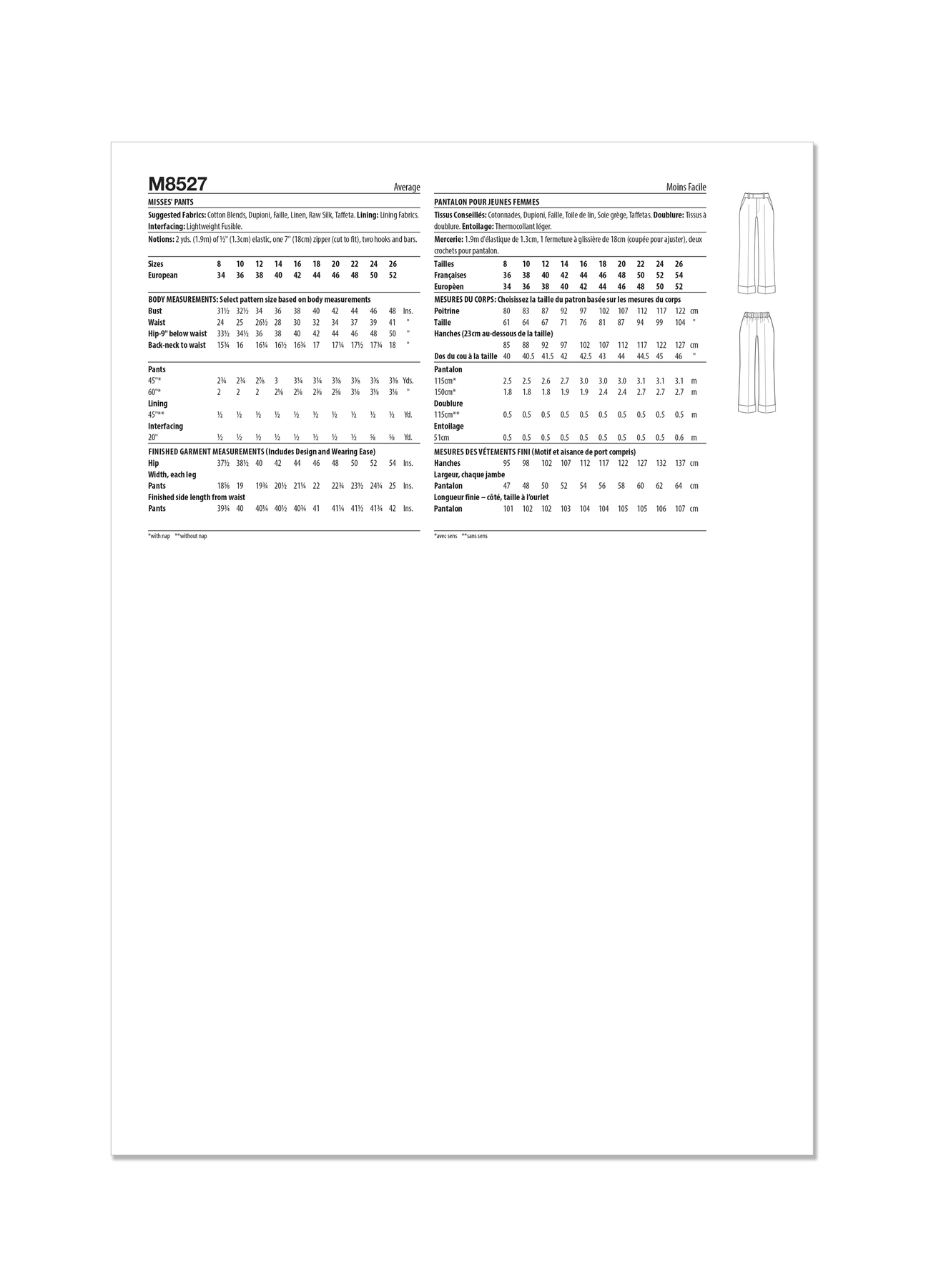 McCalls Schnittmuster M8527 Damen Hose