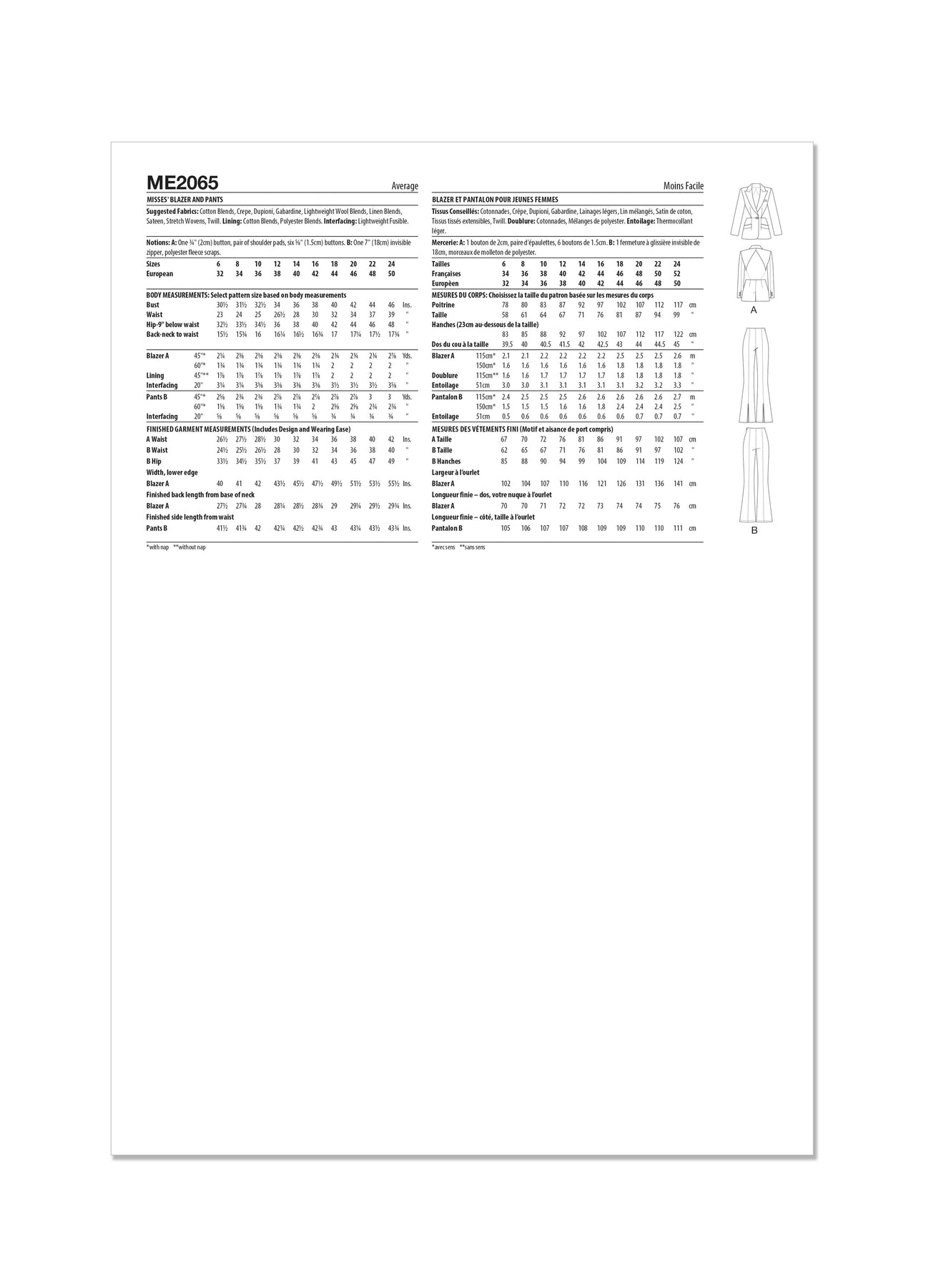 Baumwollmischungen, Crepe, Dupioni, Gabardine, leichte Wollmischungen, Leinenmischungen, Satin, Stretch-Webstoffe, Twill. Futter: Baumwollmischungen, Polyestermischungen. Einlage: Leichtes Bügelvlies.