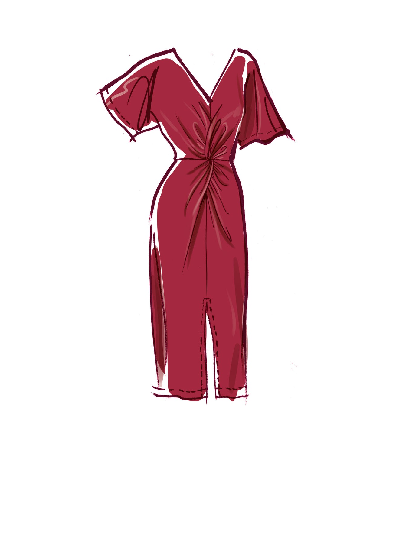 Taillierte Twist-Front-Kleider haben unterschiedliche Längen und Ärmelvarianten. Ansicht B und Ansicht C sind vorne geschlitzt.