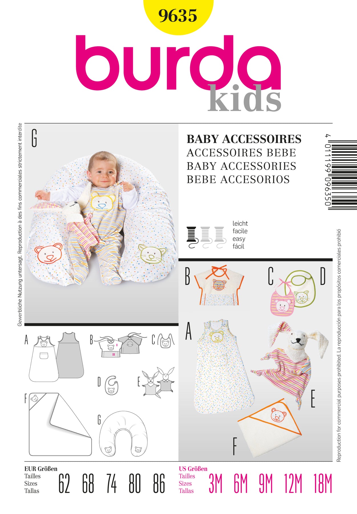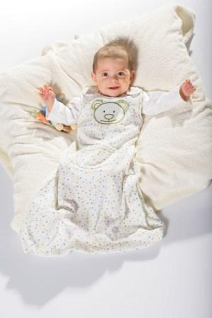 Jetzt kann das Baby kommen! Schlafsack, Badetuch, Stillkissen, Lätzchen und Kuscheltier (Hase) sind bereits gerichtet. Alle Teile sind mit süßen Applikationen liebevoll verziert.