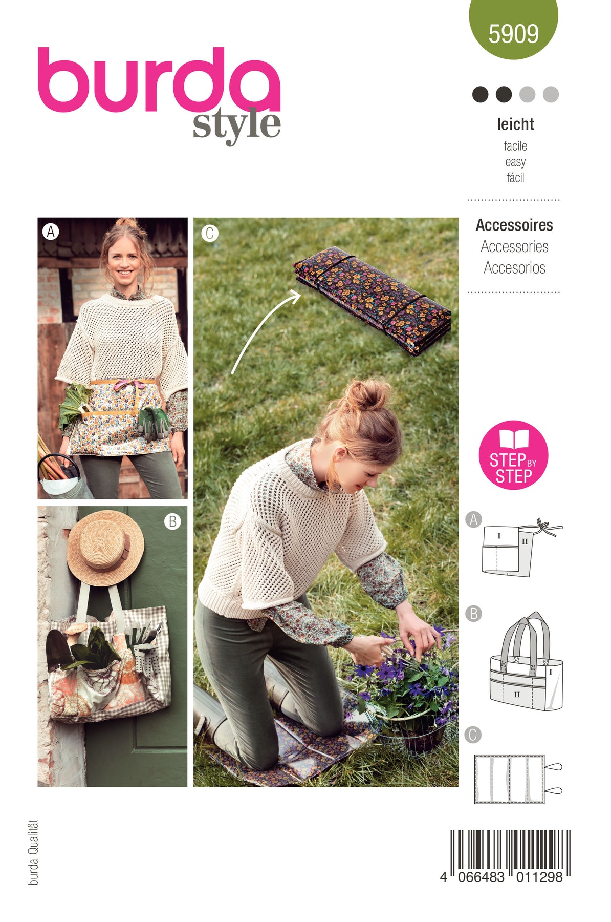 Gartenfans werden diese praktischen Accessoires lieben. A: Die kleine Schürze mit Staufächern für Gartenschere und Handschuhe ist gedoppelt und wird mit Bindebändern geschlossen. Ein faltbares Kniekissen tut beim Unkraut jäten guten Dienst. Verstaut werden kann beides in der geräumigen Schultertasche C mit Taschen an der Außenseite. Ein tolles Geschenk für Naturliebhaber mit grünem Daumen.