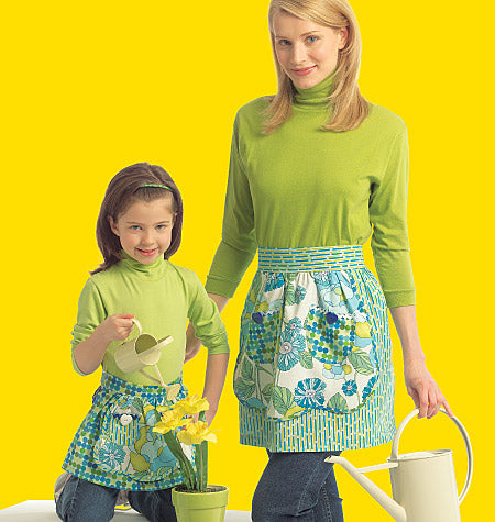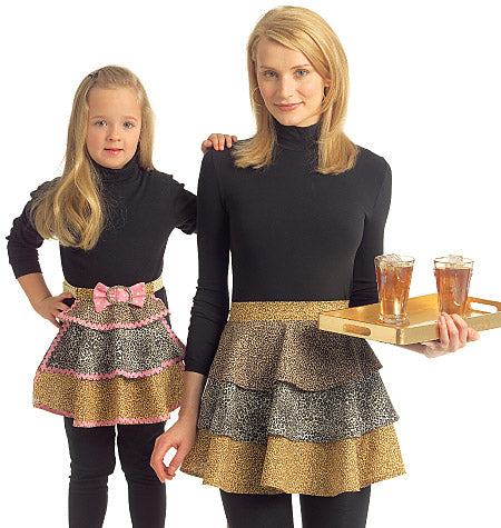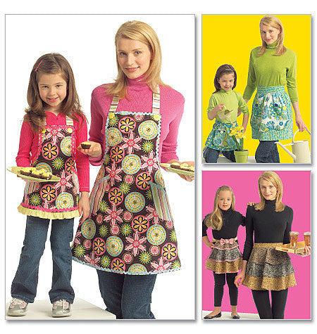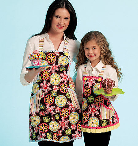 Tolle Küchenschürze in 3 Modellvarianten. Das Paket enthält Schnittmuster und Anleitungen zur Herstellung von Schürzen. A: Kontrastierender Überrock, Krawatten, Taschen und Schrägband. B: Aufgesetzte Taschen, Latz, Bänder und Bänder in Kontrastfarbe. C: Volants in Kontrastfarbe, Bänder und optionale Kontrastschleife für Kinder.