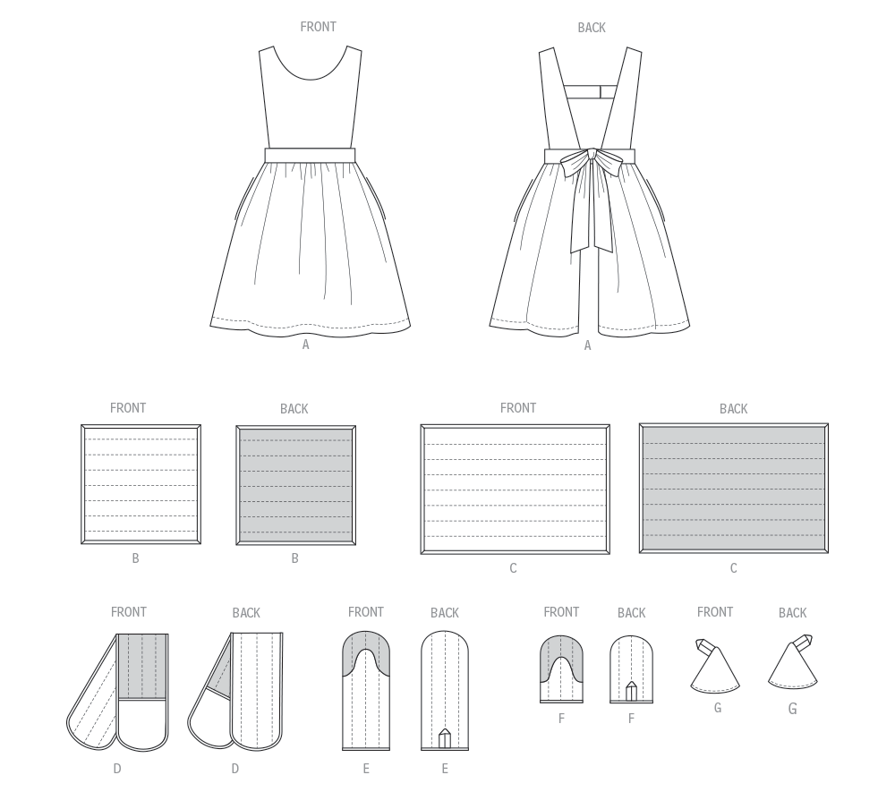 Stoffempfehlung:A,B,C,D,E,F,G: Baumwolle/Baumwollmischungen, Leinen. Innenfutter: Baumwolle/Baumwollmischungen. Einlage A: Leichtes Bügelvlies. Einlage B,C,D,E,F,G: Thermoisolierte Watte.