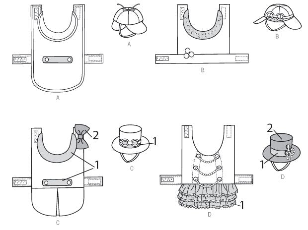 Das McCalls Schnittmuster M7004 bietet vielseitige und stilvolle Hundekleidung in vier einzigartigen Outfits. Outfit A kombiniert Mantel und Hut mit einem kontrastierenden Rückenband und einer gekauften Bindung für einen eleganten Look. Outfit B umfasst eine Jacke und Mütze mit auffälligem Kontrastkragen und praktischem Visier, ideal für sonnige Tage. Outfit C besticht durch Mantel und Hut mit kontrastierendem Kragen, Rückenband, Hutband und einer schicken Fliege, die Ihrem Hund einen besonderen Charme verleiht. Outfit D rundet die Kollektion mit Mantel, Hut, Rock und farblich abgestimmtem Hutband ab – perfekt für festliche Anlässe. Dieses Schnittmuster ermöglicht es Ihnen, individuelle und modische Hundekleidung selbst zu gestalten, die Komfort und Stil vereint.