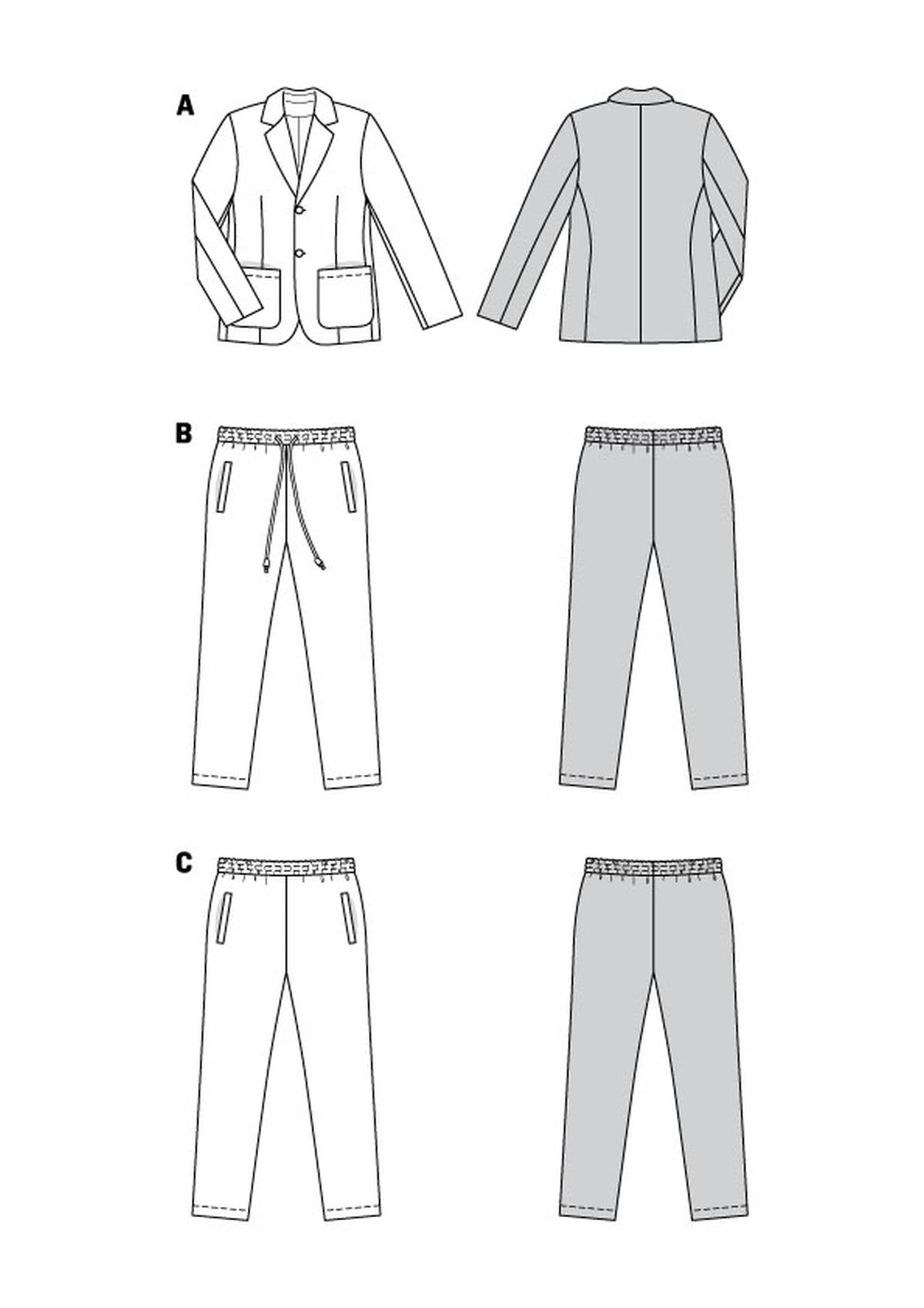 Für die ambitionierte Hobbyschneiderei perfekt geeignet ist dieser junge Herrenanzug bestehend aus legerer Schlupfhose mit raffinierten Eingrifftaschen und einem klassischen, gefütterten Jacket mit Revers und aufgesetzten Taschen.