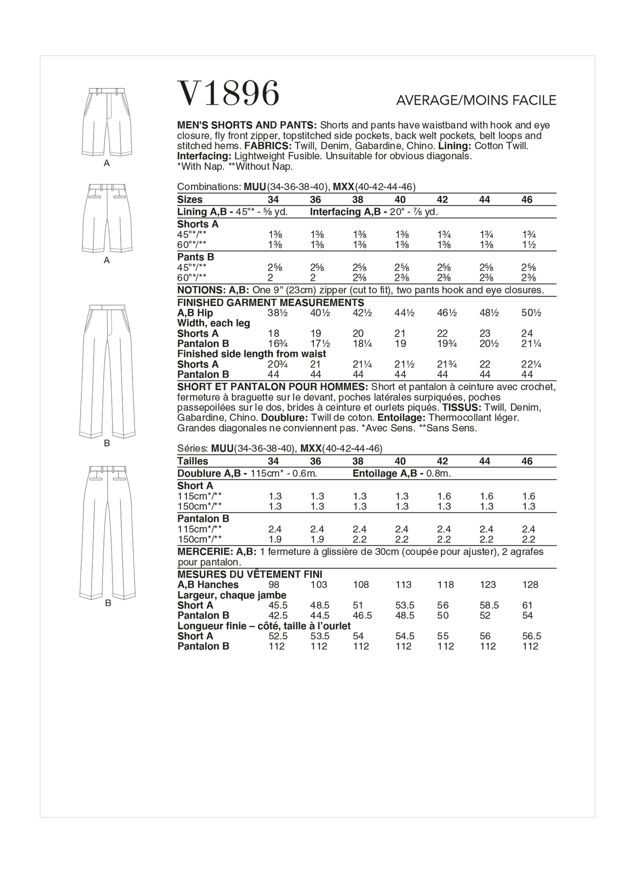 Vogue Schnittmuster V1896 Herren Short & Hose