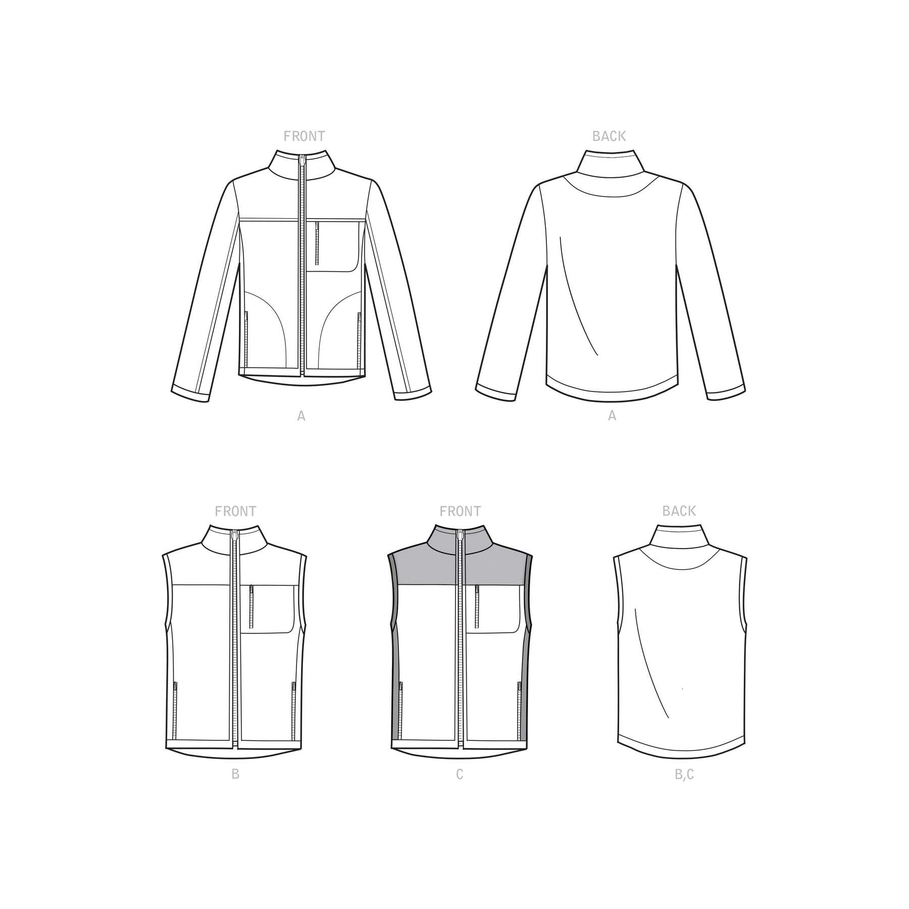 Herrenweste und /-jacke mit Stehkragen, Trennreißverschluss und Taschendetails.