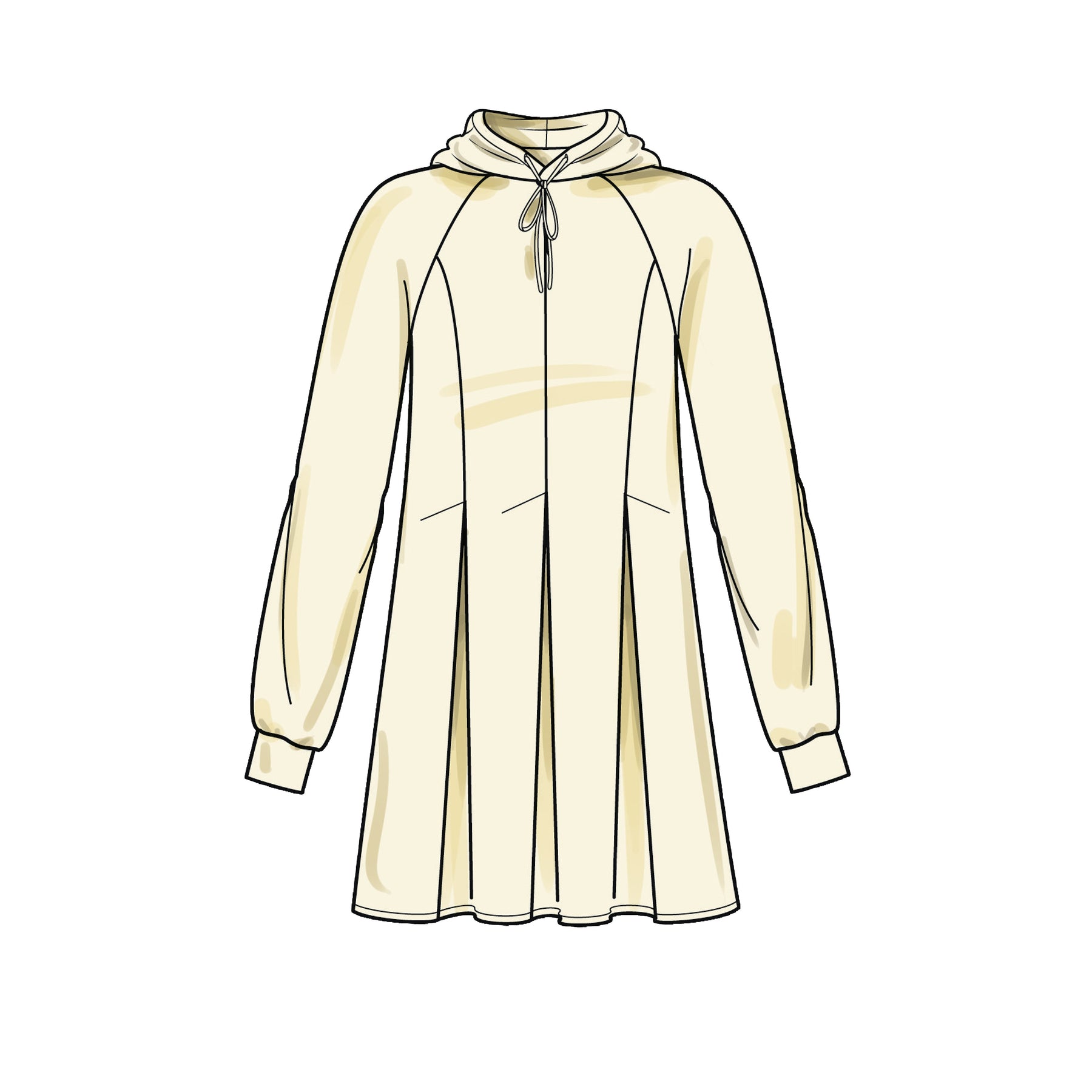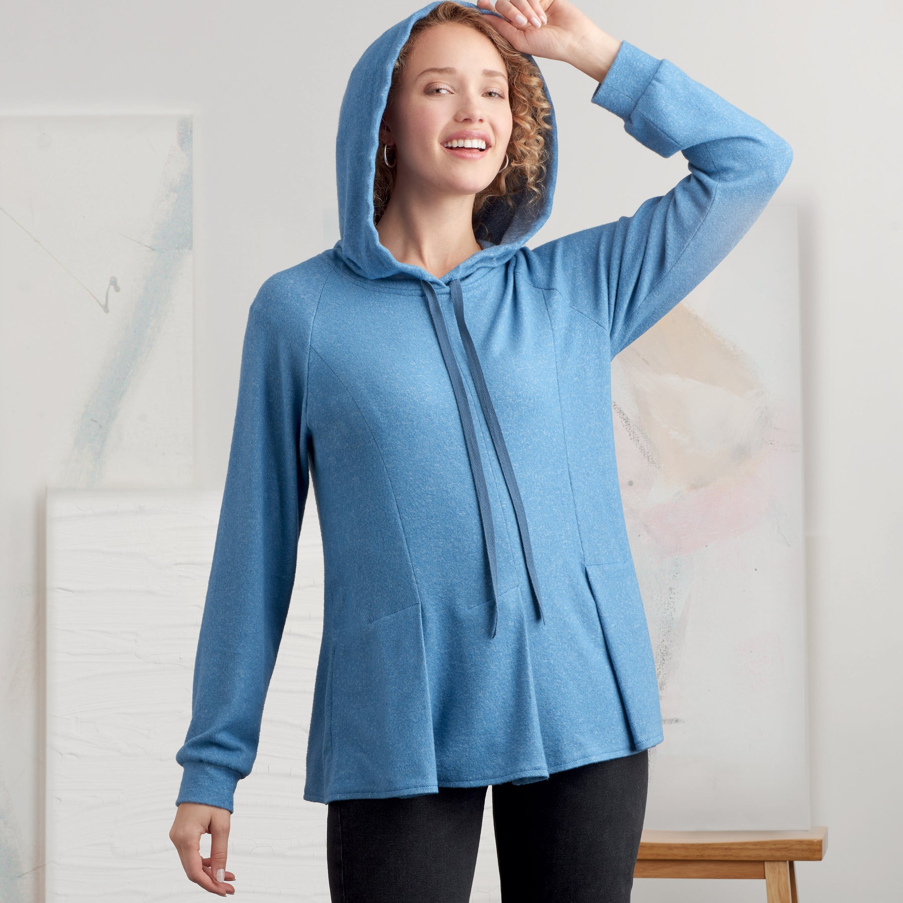 Plissee-Sweatshirts zum Anziehen mit oder ohne Kapuze. Optionen für gerade oder geraffte Ärmel und Saumlängenvariationen.