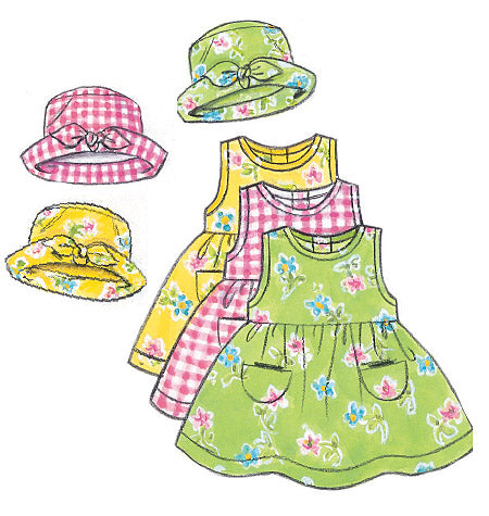 Zuckersüßer Schnitt für die Kleinen. Statten Sie Ihr Kind komplett neu aus, mit Kleidchen, Stramplern, Höschen, einem hut und einer kleinen Handtasche.