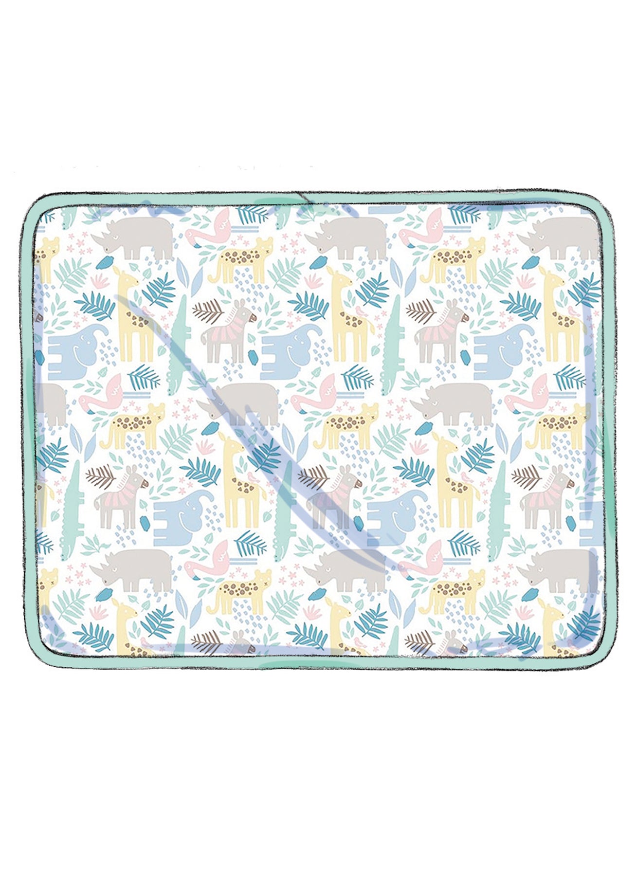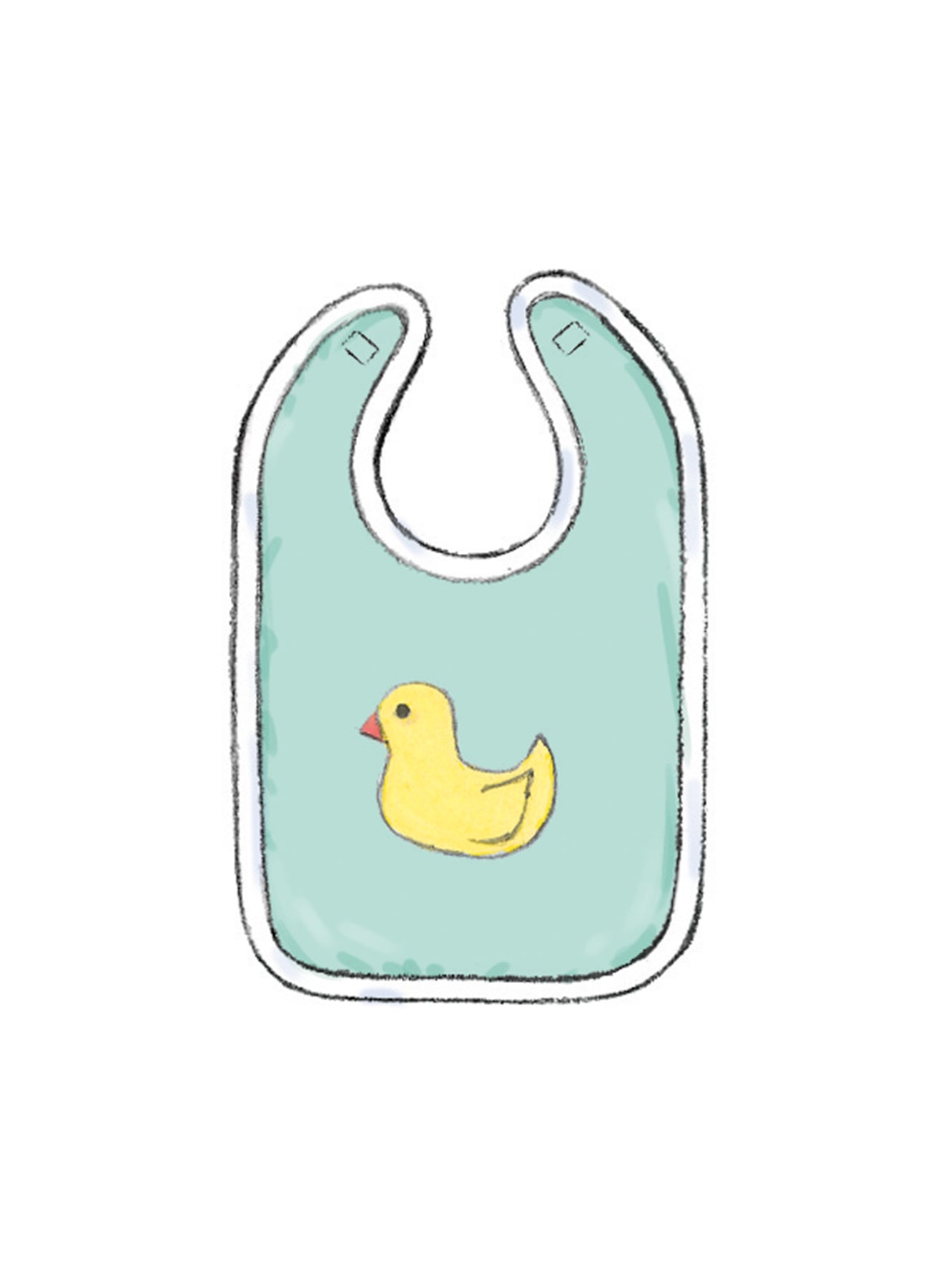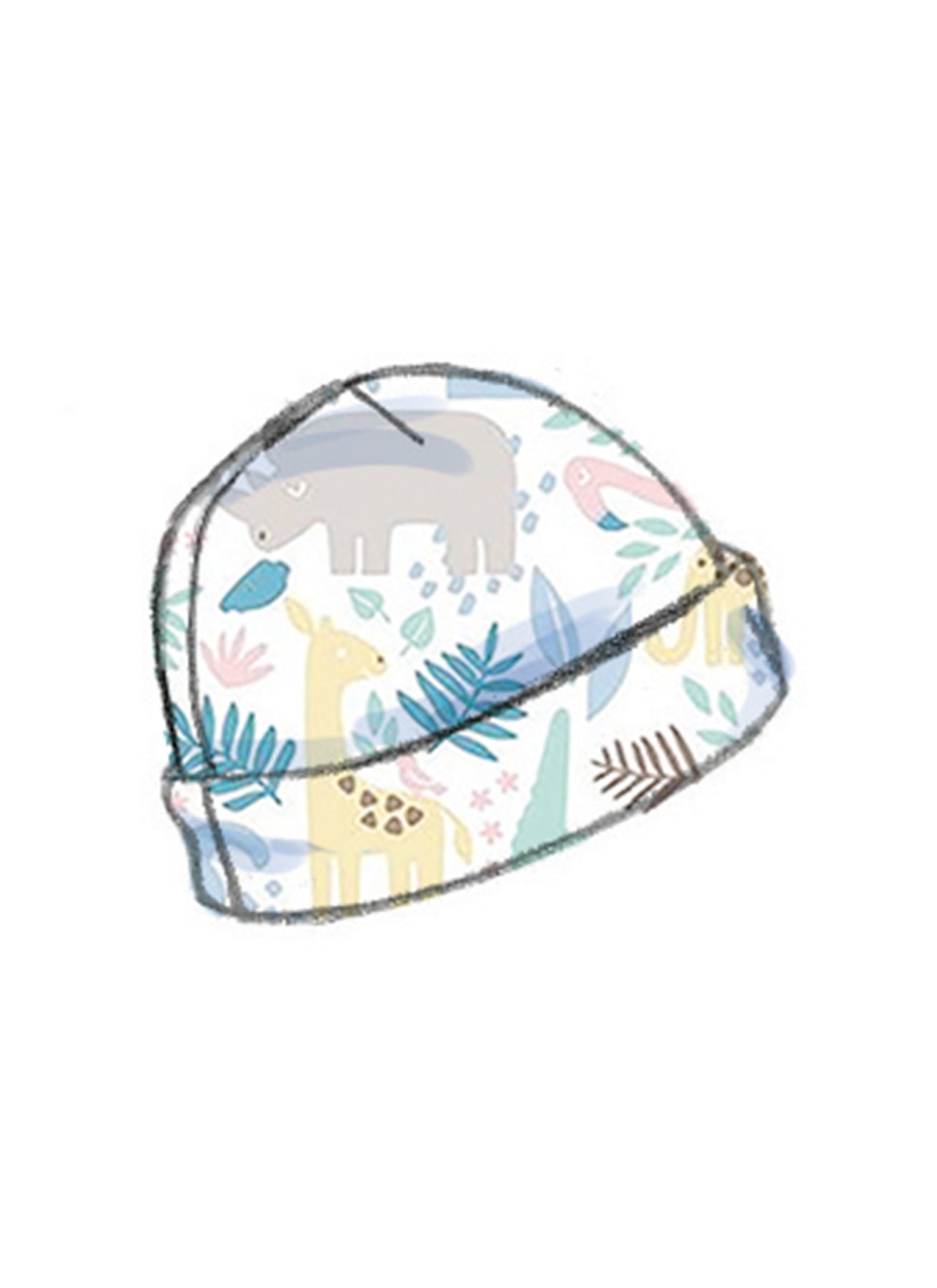 Locker sitzende Strampler A, B oder Jumpsuit C haben ein Nackenband, einen Reißverschluss vorne, eine Lasche mit Druckknopf und lange Ärmel mit Bündchen. Ansicht B hat einen Kordelzug. Ansicht C hat einen Gummizug an den Beinen. Das locker sitzende Shirt hat Mockbands, einen Druckknopfverschluss, genähte Säume und kurze Ärmel. Der Windelbezug hat einen teilweisen Gummizug in der Taille und an den Beinen mit Klettverschluss. Der Hut hat eine umgeschlagene Krempe. Lätzchen mit Klettbandverschluss und gekaufter Applikation. Fäustlinge und Füßlinge haben einen Gummizug. Selbstgefütterte Decke. Windelbezug, Lätzchen und Decke haben eine gekaufte Verzierung.
