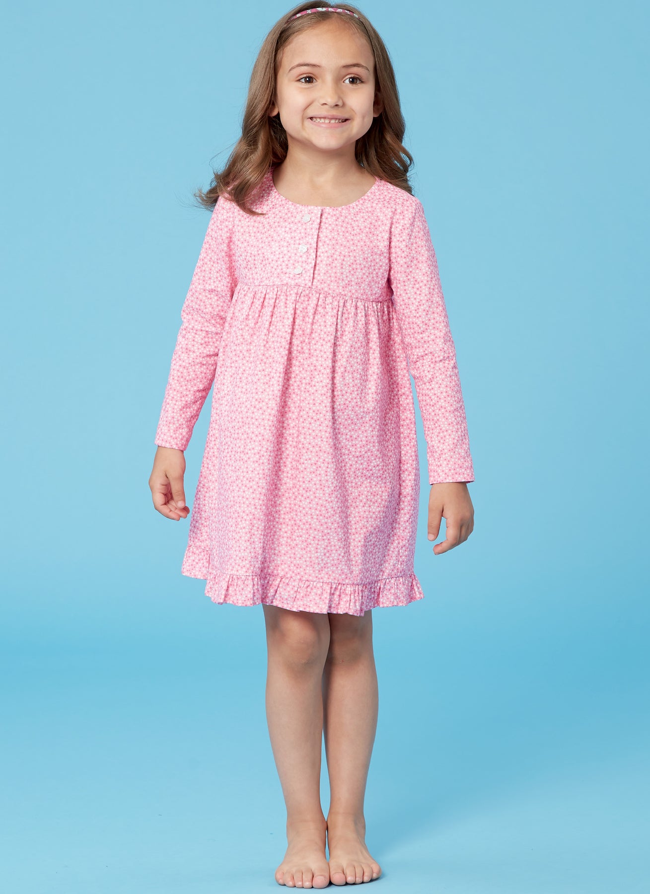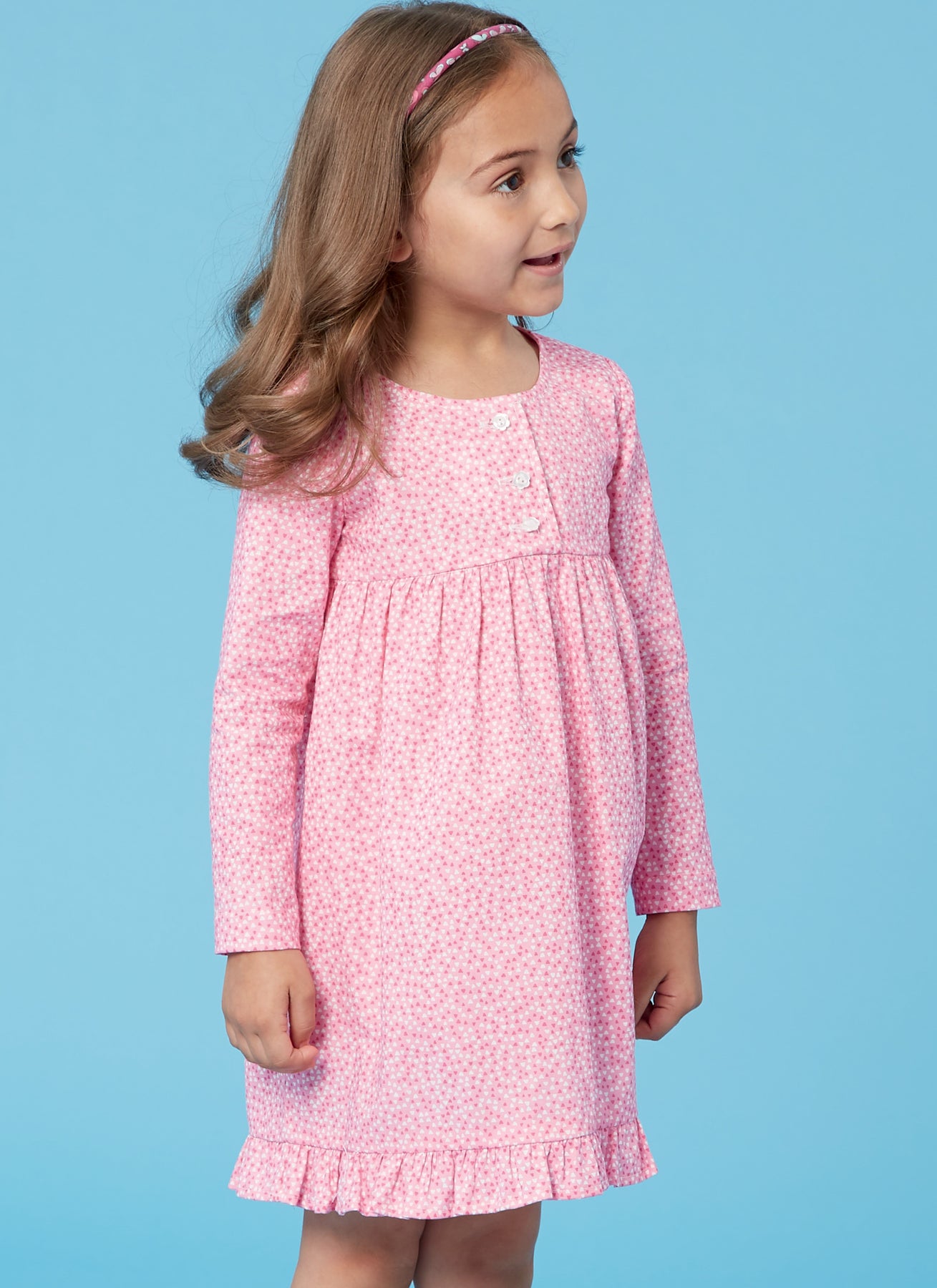 Super süßes Nachthemd oder auch Zweiteiler für Mädchen mit Rüßchen an den Ärmeln und einer Knopfleiste am Brustbereich. Wunderschöne Träume wünschen wir!