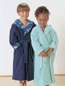 Bademantel, sehr weit. A mit Kapuze, außen Frottee, innen Baumwollstoff. B mit Schalkragen.