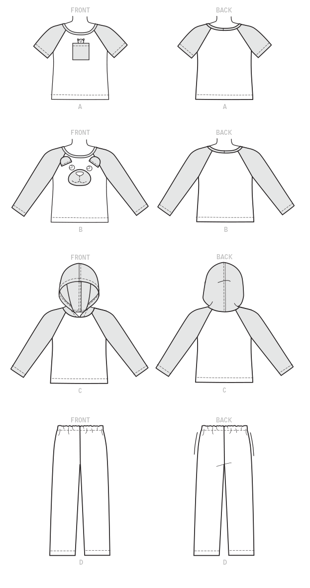 In diesem Schnittmuster erhalten Sie ganz süße Schnitte für Schlafanzüge für Mädchen und Jungs. Druch die verschiedenen Muster wie ein Bär, eine Maus und ähnliches wird dieser Schlafanzug ganz sicher ein Hit für jedes Kind.