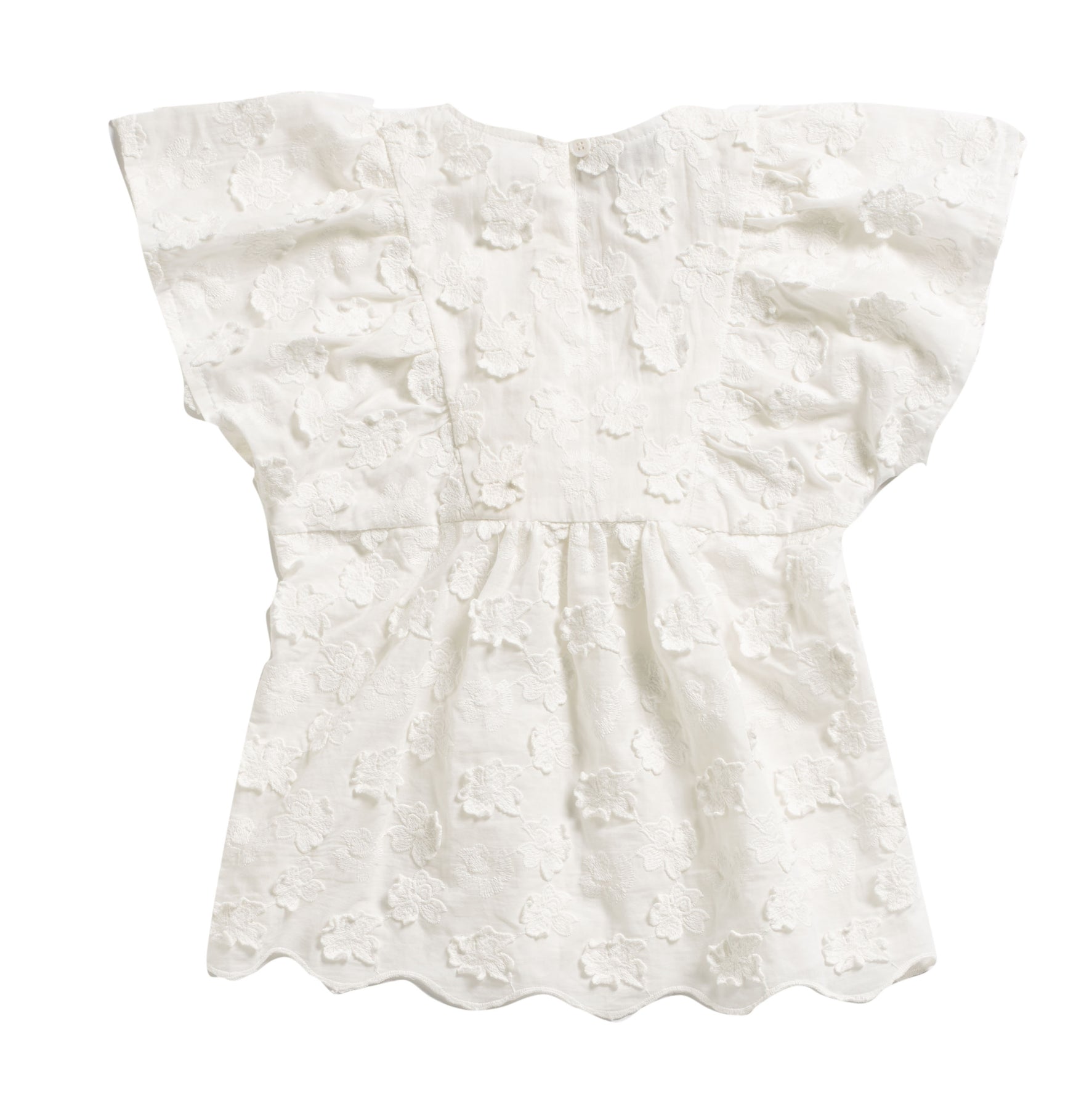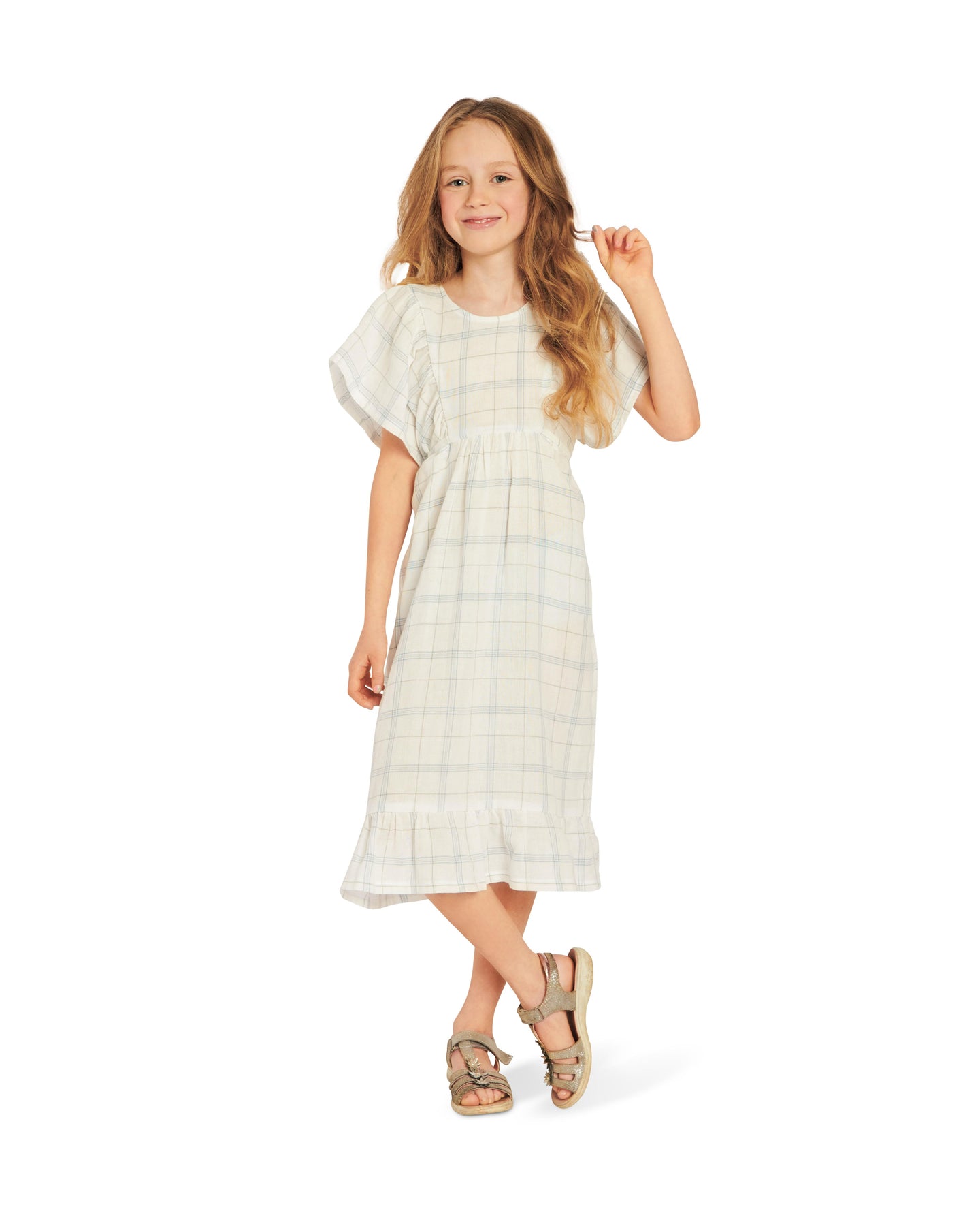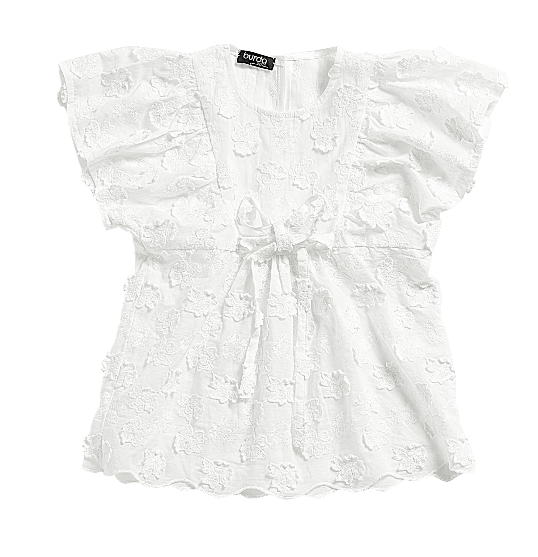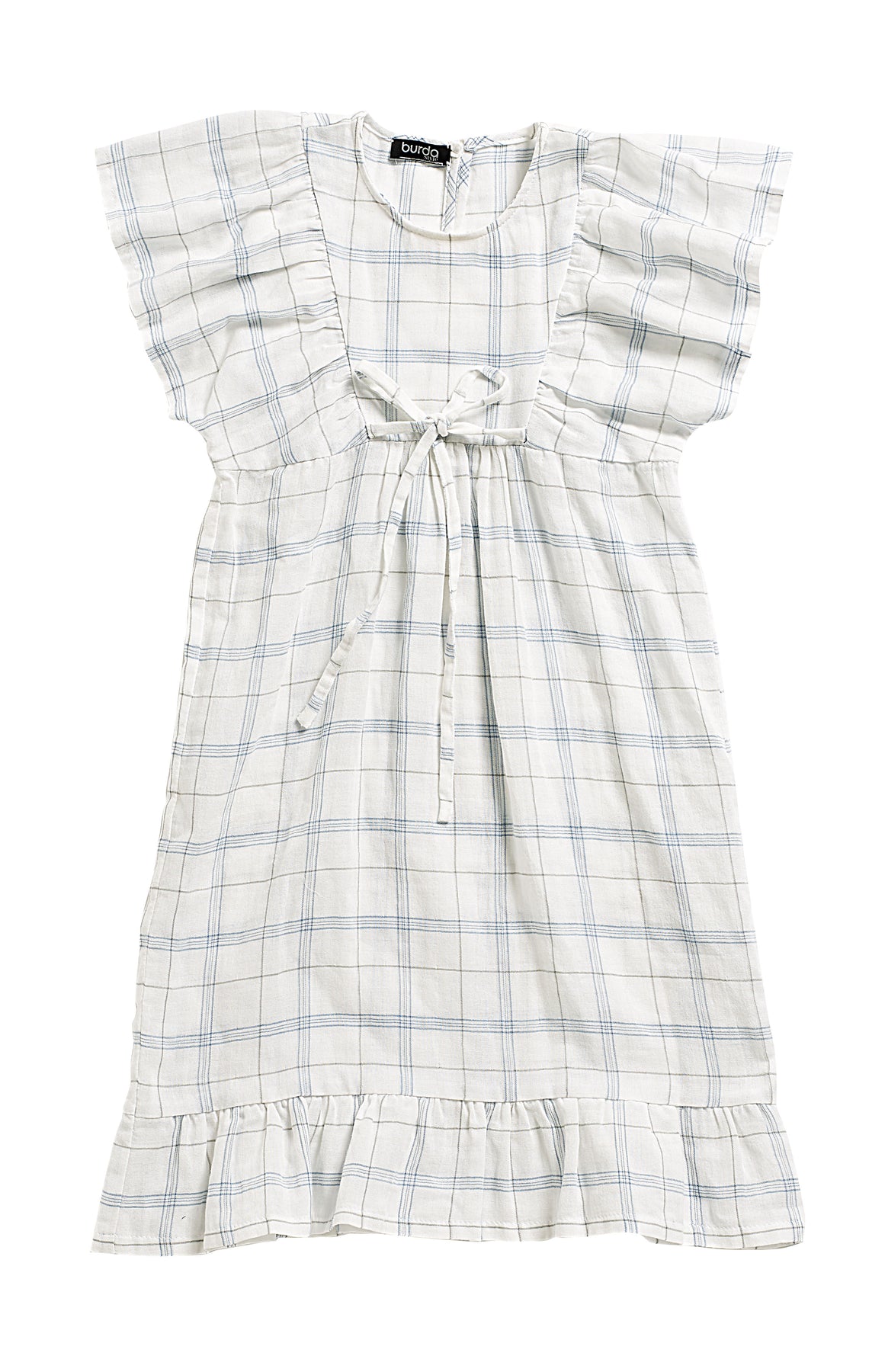 Kleine Ladies werden Kleid und Bluse mit Rüschenärmeln lieben. Beim An- und Ausziehen hilft ein Schlitz im Rückenteil. Die angesetzten Rockbahnen sind in der Mitte eingereiht. Kleid B zusätzlich mit einer breiten Saumrüsche.