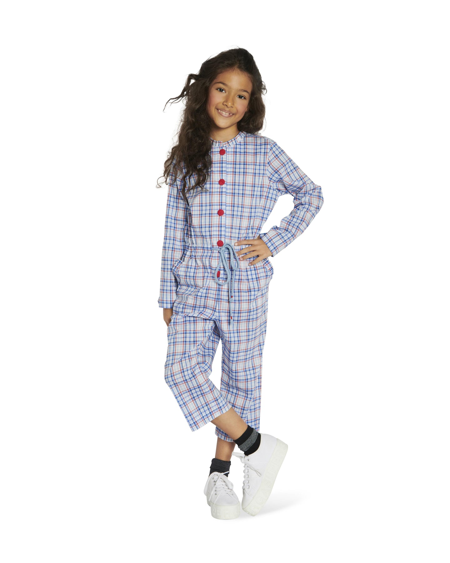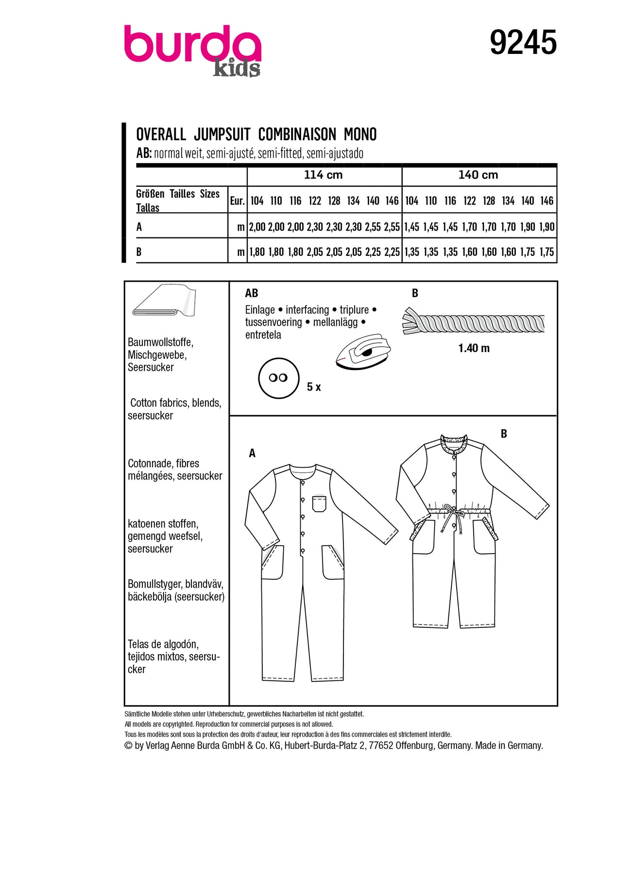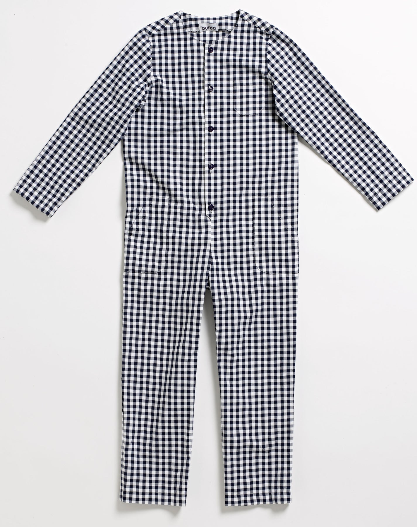 Bequemer Overall zum Knöpfen und mit aufgesetzten Taschen - für Mädchen und Jungs gleichermaßen geeignet. Einteiler B wird mit Rüschen und einer Kordelblende in der Taille ganz feminin. Arme und Beine können bei beiden Varianten auch lässig gekrempelt werden.