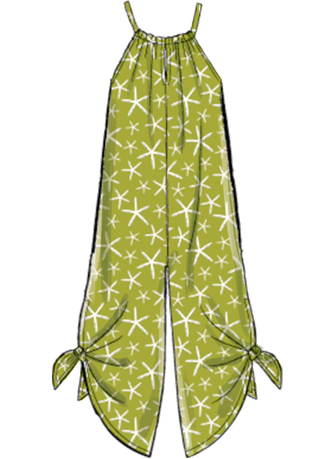 Richtig moderner Jumpsuit mit einem Neckholder. Durch Blumen- oder Motivstoffe wird dieser zu einem Highlight in jedem Kinderkleiderschrank.