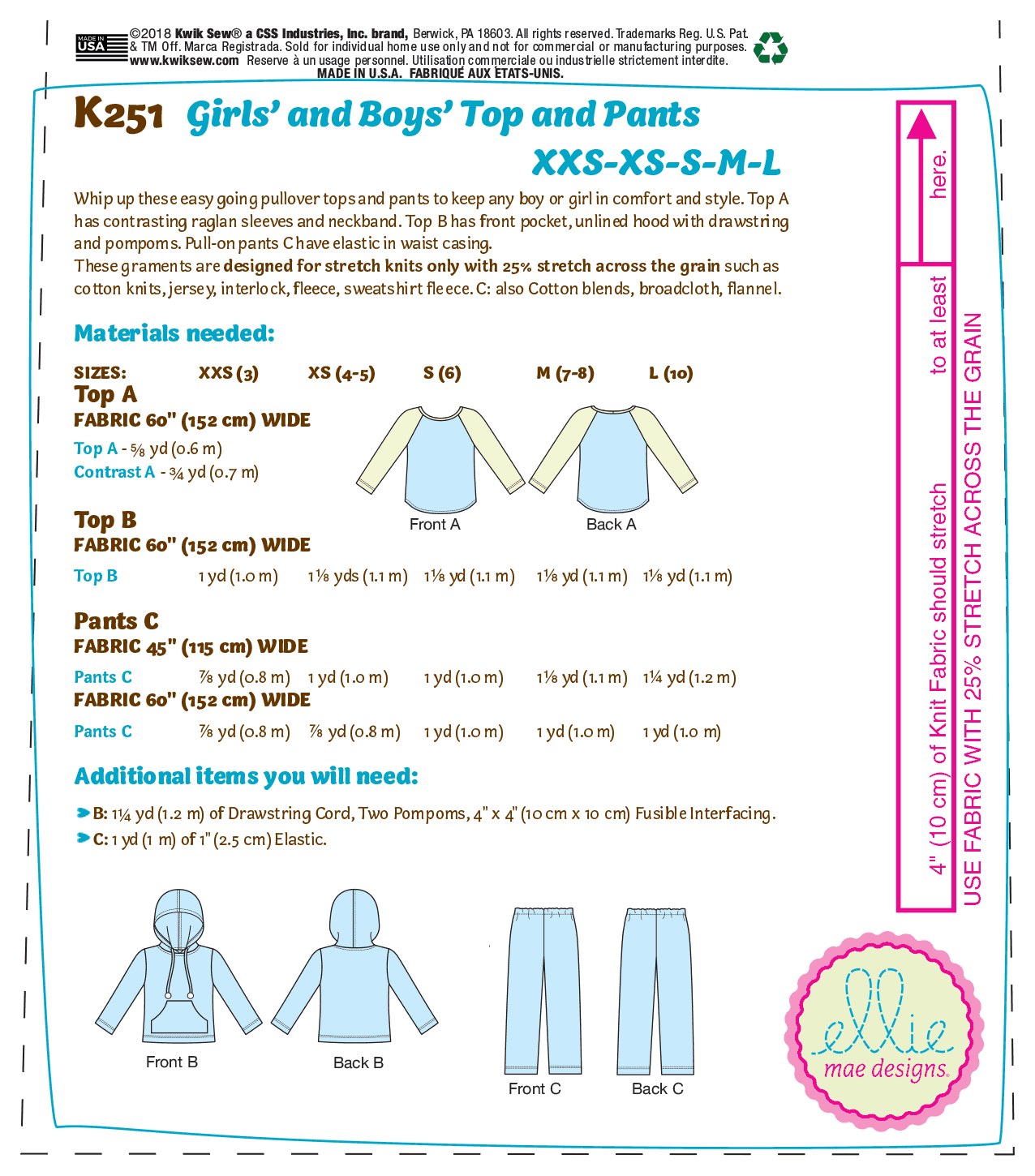 Kwik Sew Schnittmuster K0251 Mädchen/Jungs Hose und Top