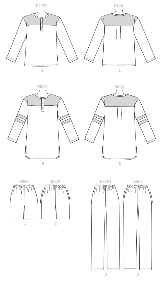 In diesem Schnittmuster finden Sie etwas für die ganze Familie. Einen schönen Schlafanzug für Jedermann mit verschiedenen Längenvariationen sowie Nachthemden für die Mädchen und Damen. Ein gemütlicher Familienabend ist gesichert.