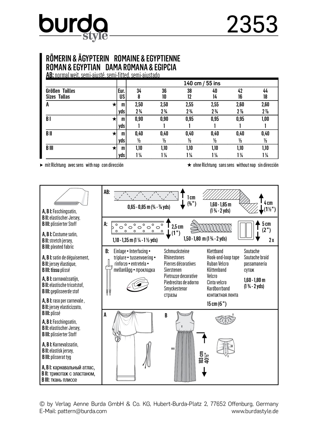 Burda Schnittmuster 2353 Römerin - Ägypterin - Kleid - Kragen - Gürtel