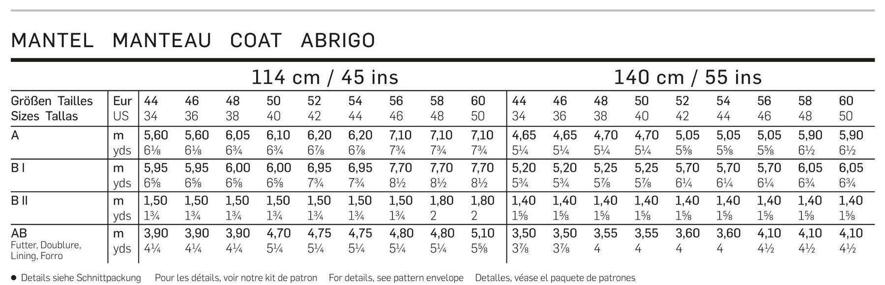 Nutzen Sie die Maßtabellen in der Produktbeschreibung. Kleidung nach Schnittmustern fällt oft anders aus als Konfektionsgrößen. Weitere Informationen erhalten Sie im Blog oder hier.