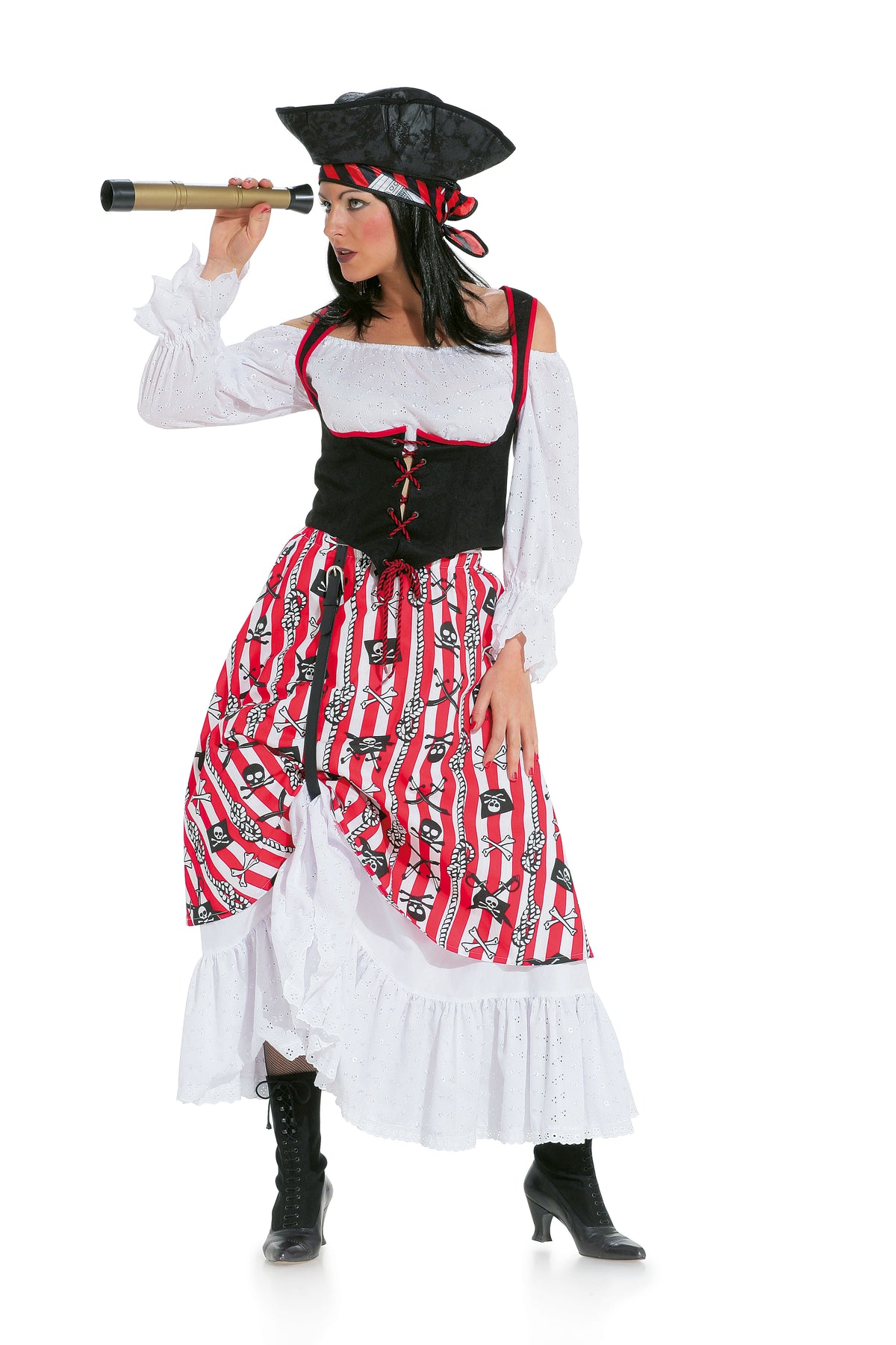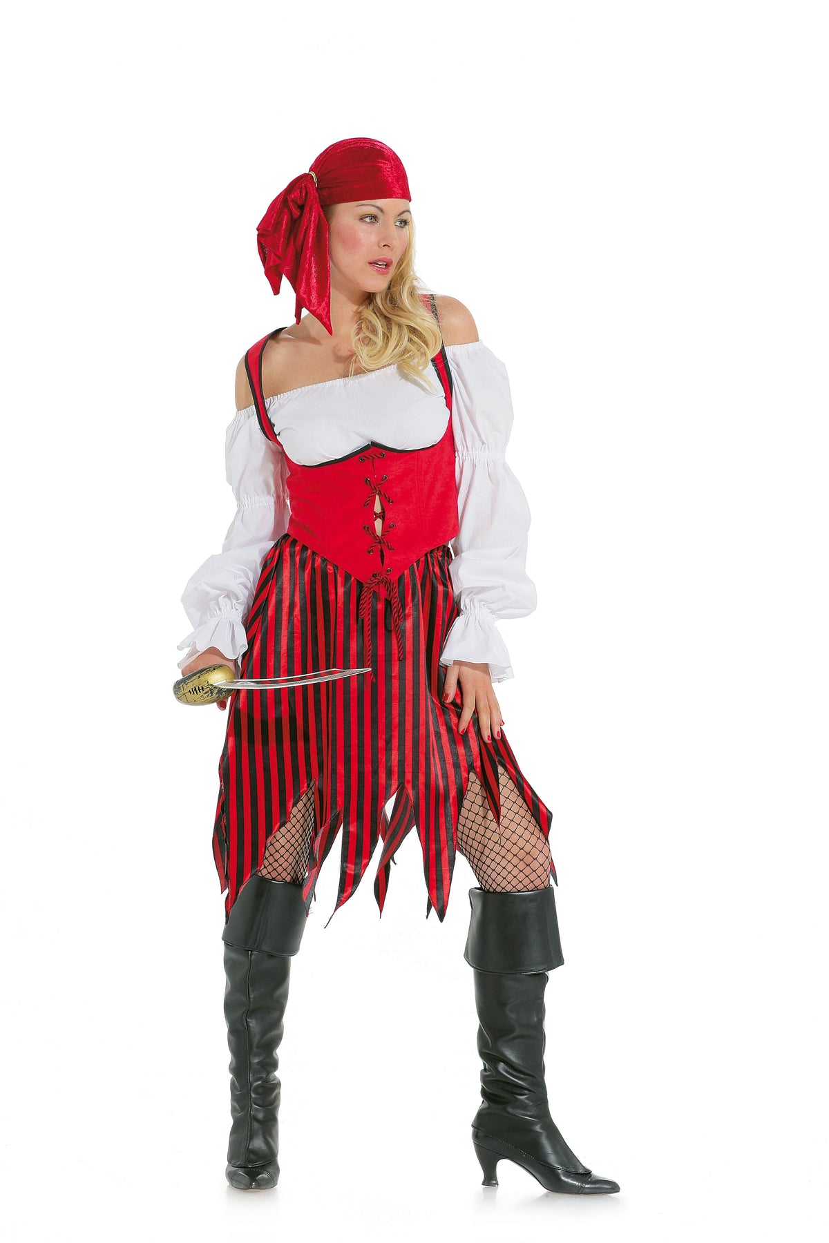 Der Rock fetzig oder hochgerafft mit Unterrock, das knappe Mieder geschnürt und die kurze Wäschebluse mit Gummidurchzügen: So machen Sie als Piratenbraut eine super Figur!