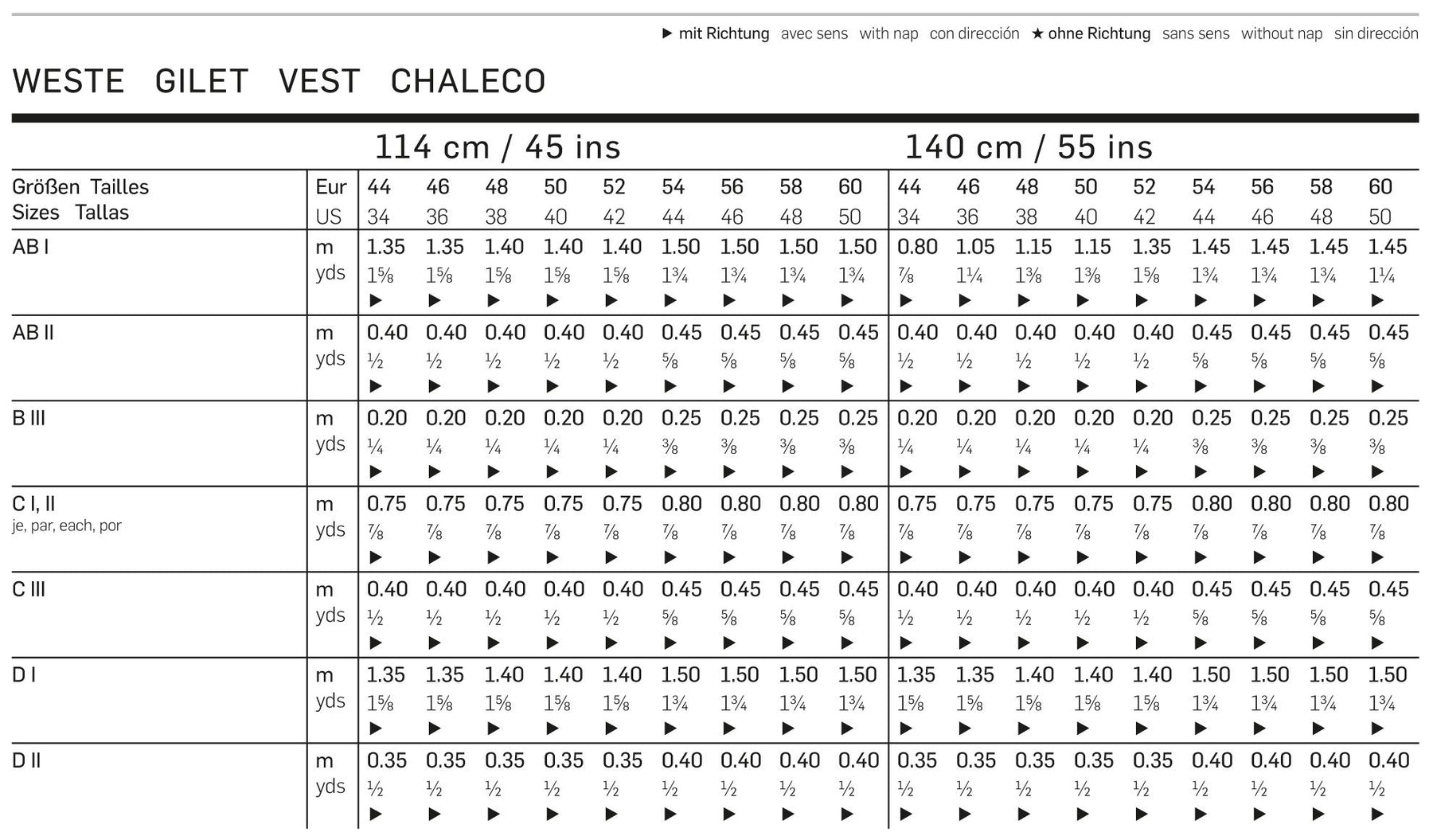 • Inklusive Nahtzugabe (außer Burda)