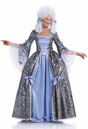 Historisches Kleid mit typischen Details. Edel aus Samt, verspielt mit Schleifen. Die breiten Hüften werden mit einem speziellen Unterrock gestützt.