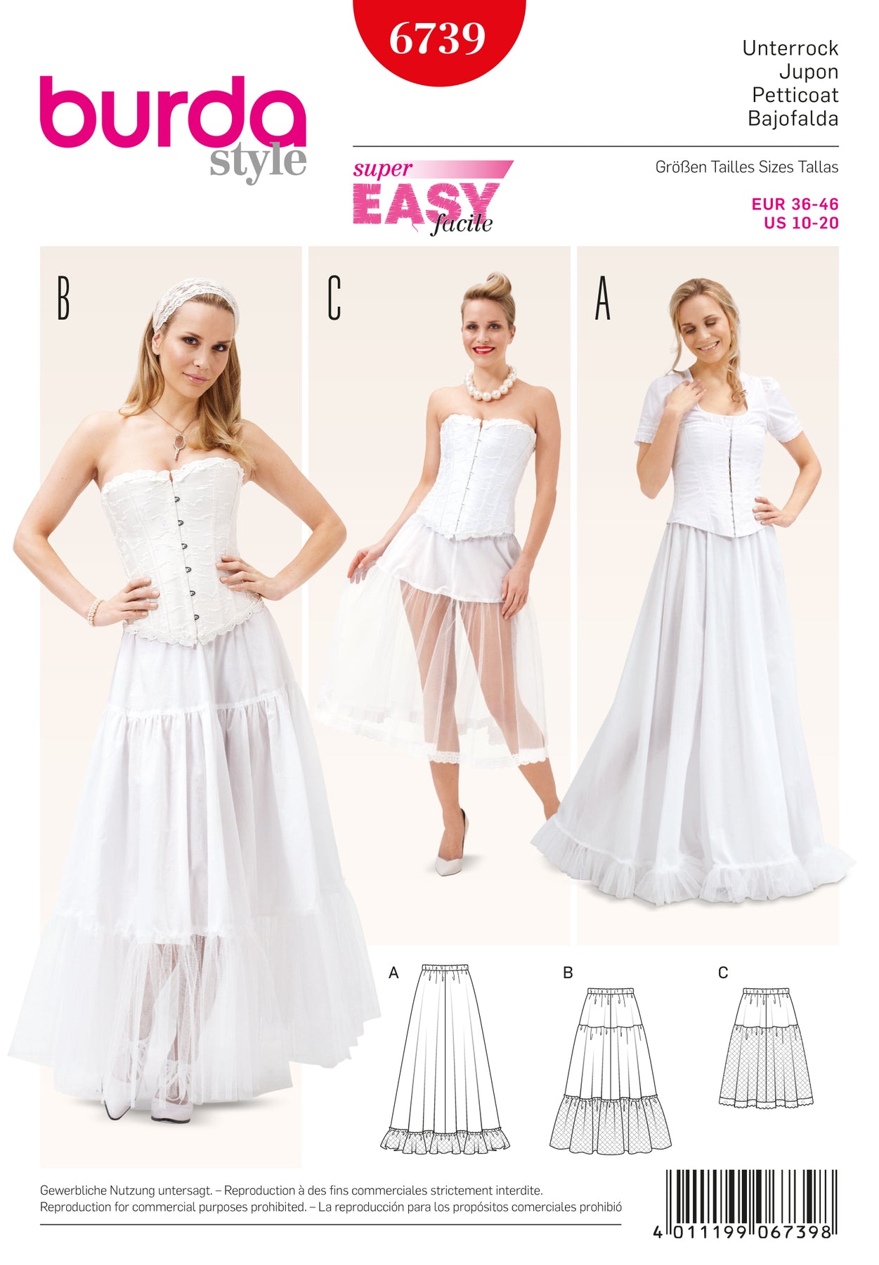 Unterrock - Gummidurchzug Stufenrock - Rüschenrock Schwierigkeitsgrad: super easy Gr. 36, 38, 40, 42, 44, 46 Unterröcke aus Batist und Tüll, schönes Darunter zum Braut- oder Abendkleid in unterschiedlicher Zusammensetzung und Saumweite. Die Saumrüsche aus Tüll sorgt jeweils für Volumen und Stand. Stoffempfehlung: Batist und Tüll