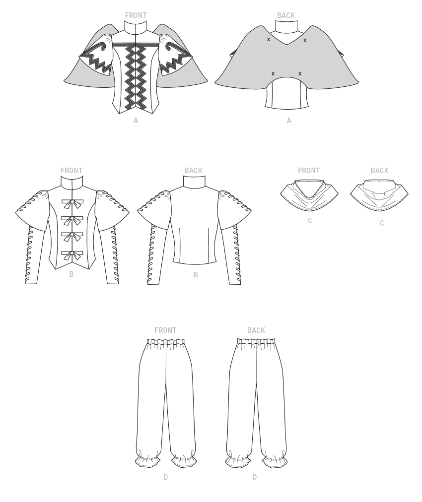 Stoffempfehlung:*With Nap **Without Nap A,B,D: Twill, Gabardine. Contrast 1A: Long Pile Fur. Contrast 2A, 3A: Felt. C: Cotton/Cotton Blends. Note:Fabric requirement allows for nap, one-way design or shading. Extra fabric may be needed to match design or for shrinkage.