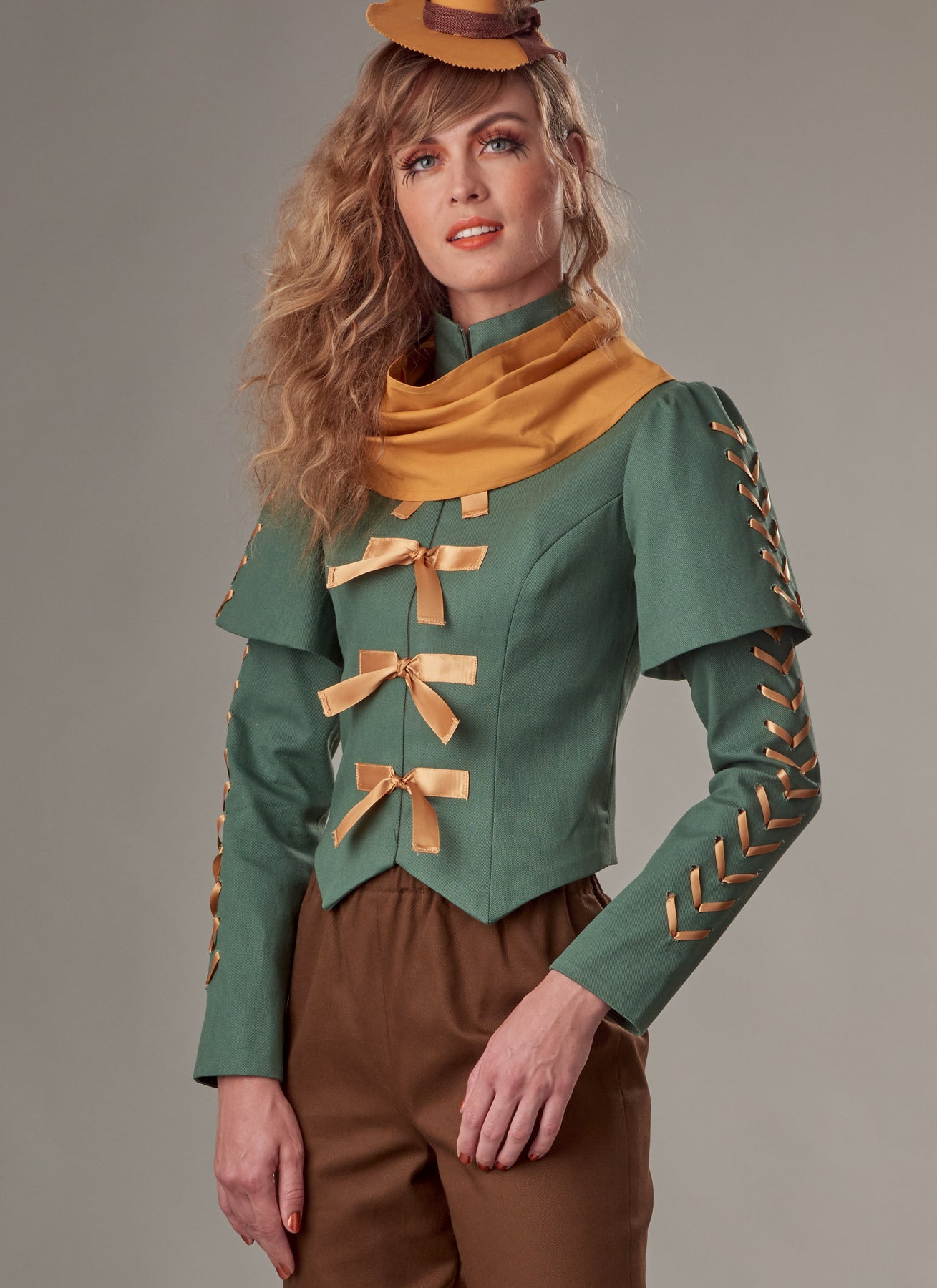Egal, ob du dich eher wie ein schelmischer, verspielter Anthropoide fühlst oder ob du ein sanfter, freundlicher, rücksichtsvoller & ehrlicher Charakter bist, diese Stücke werden deine Kreativität anregen. Das Fräulein-Kostüm besteht aus einem hochgeschlossenen Oberteil mit kurzen Glockenärmeln und witzigen Details. Die Flügel sind eine lustige Ergänzung. Leichte Pumphose und Kutte.