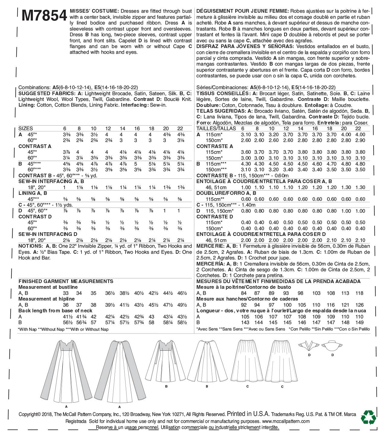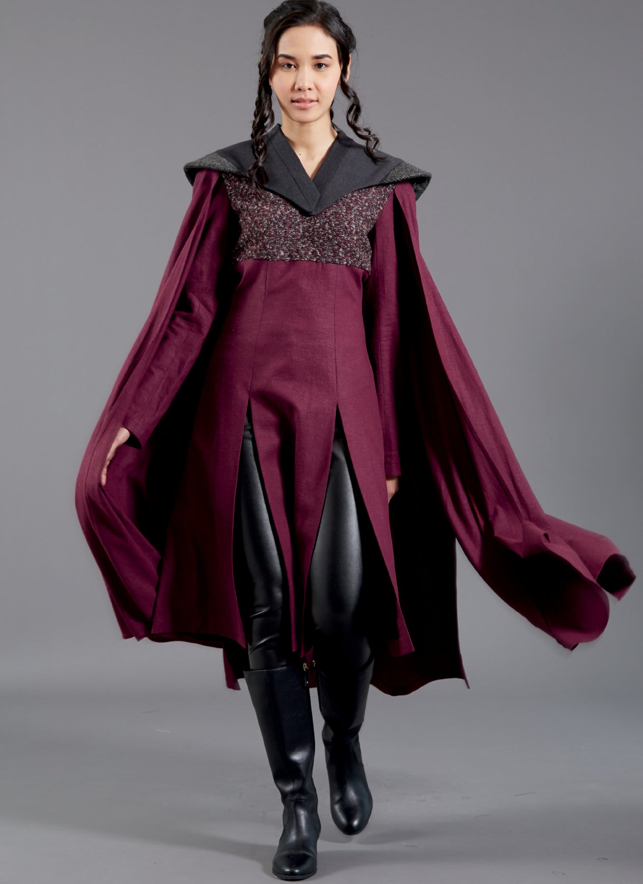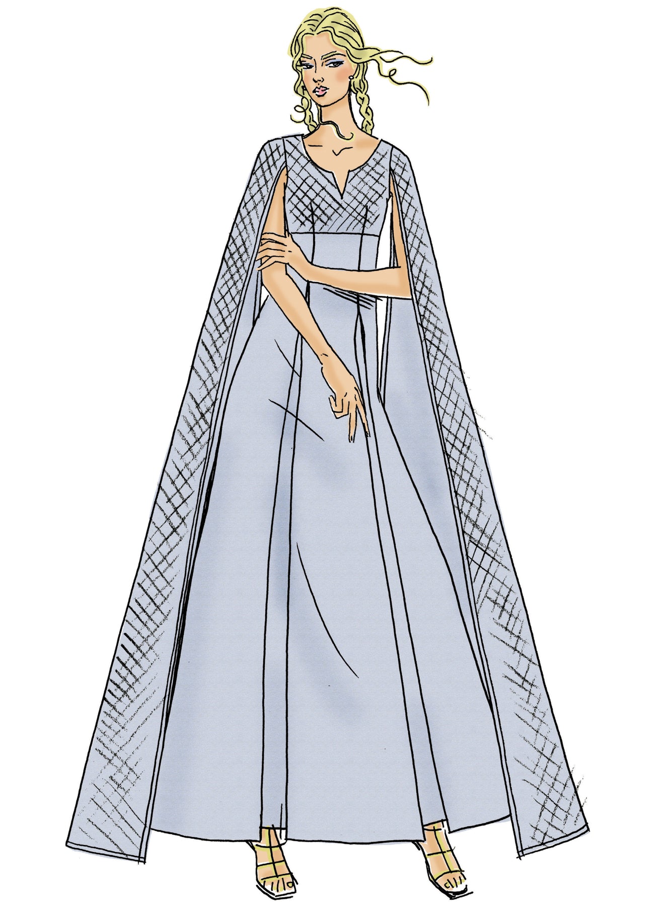 Frauen Kostüm mit langem oder kürzerem Kleid. Neben den beiden Kleidern kann man auch separat einen Rock (Variante C) oder den Kragen (Variante D) nähen