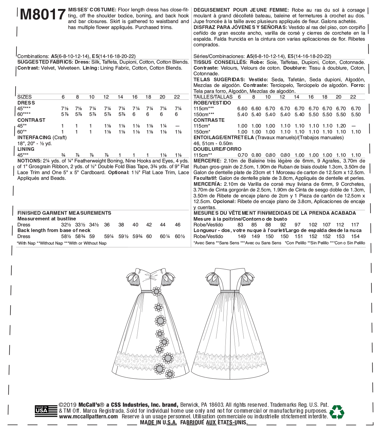 McCalls Schnittmuster M8017 Damen Kostüm