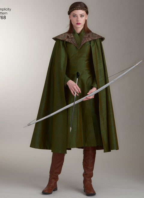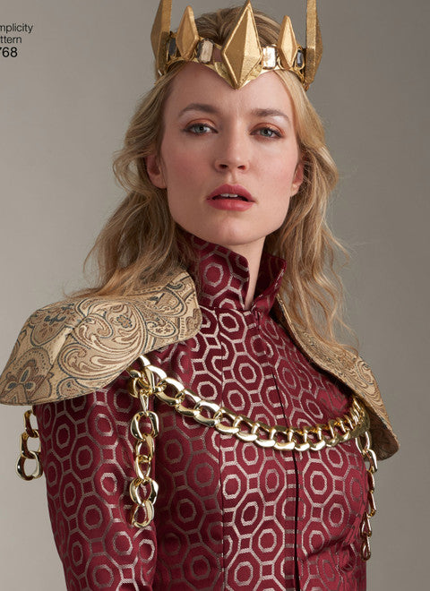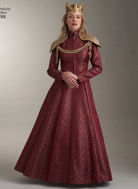 Simplicity Schnittmuster S8768 – mittelalterliche Damenkostüme mit Kleidern, Umhang & Kettenschulterpolstern