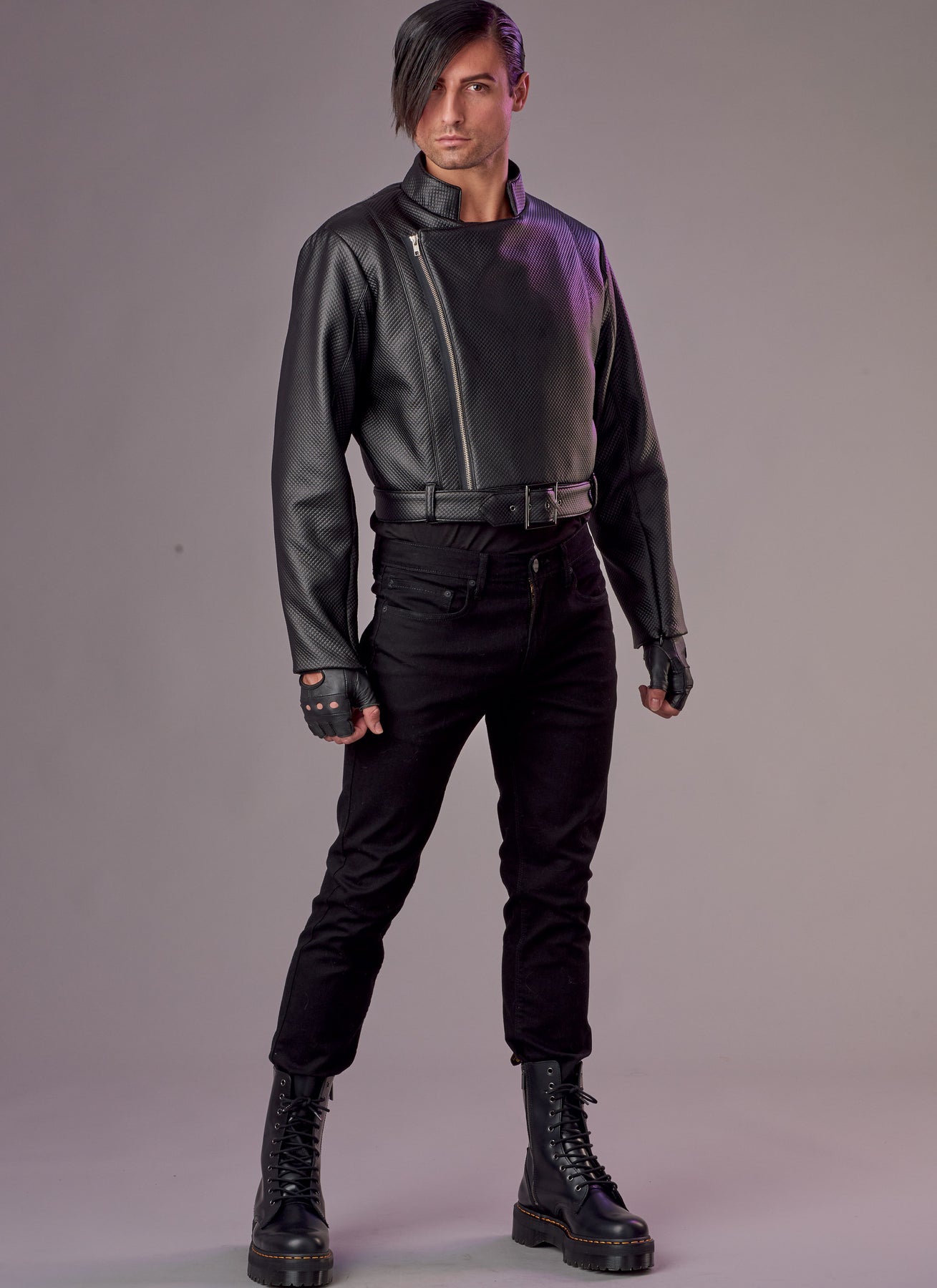 Die Unisex-Motojacke ist perfekt, um deine Superhelden- oder Superschurken-Cosplay-Persönlichkeit zu vervollständigen. Die asymmetrische Jacke mit Reißverschluss hat ein Taillenband mit Schnallen, einen Stehkragen, maßgeschneiderte Nähte und Ärmel mit unsichtbarem Reißverschluss.