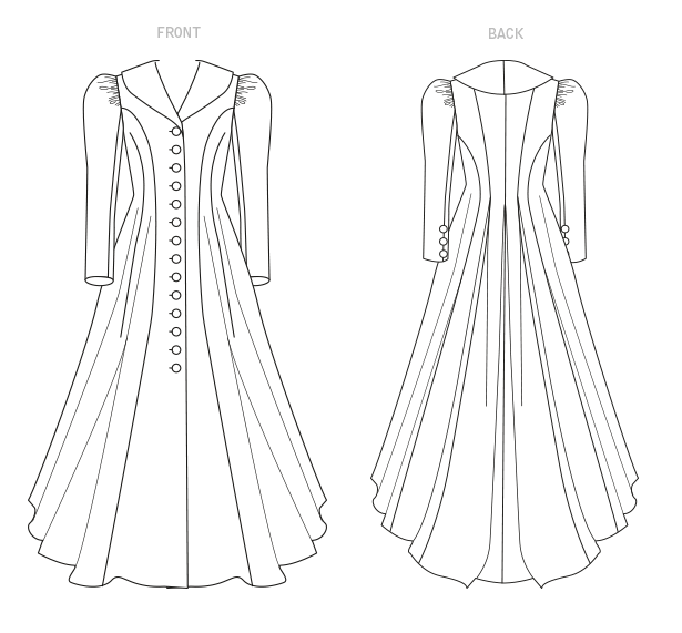 Stoffempfehlung:*Mit Flor. **Ohne Flor. Wolle, Wollmischungen, Gabardine, Futter: Seide, Tafetta, Einlage: Einnähen. Hinweis: Der Stoffbedarf berücksichtigt Flor, einseitiges Design oder Schattierungen. Zur Anpassung an das Design oder wegen des Einlaufens kann zusätzlicher Stoff erforderlich sein.