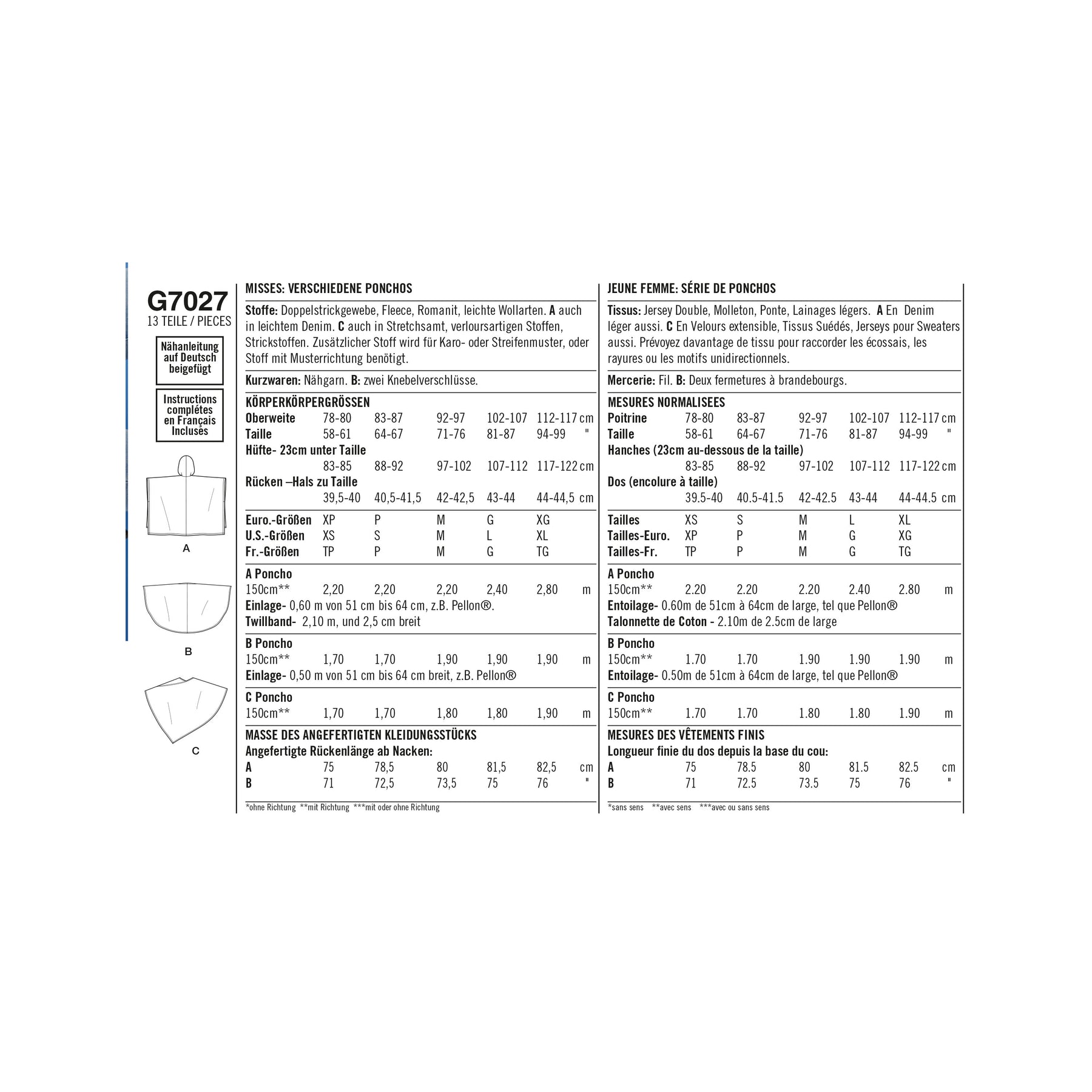 - Inklusive Nahtzugabe (außer Burda)