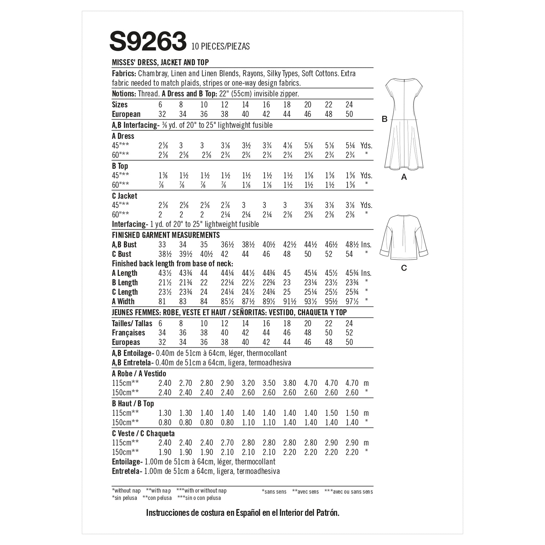 • Inklusive Nahtzugabe (außer Burda)