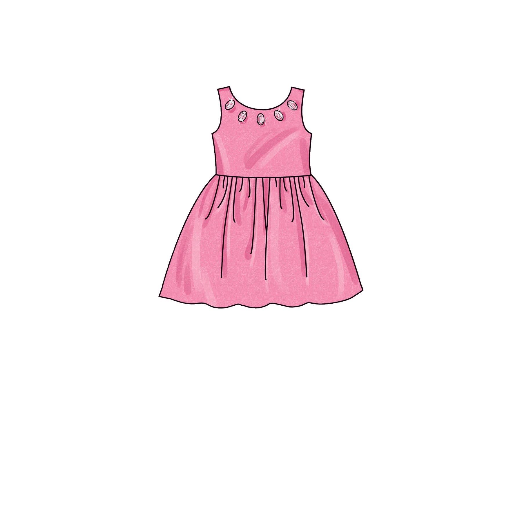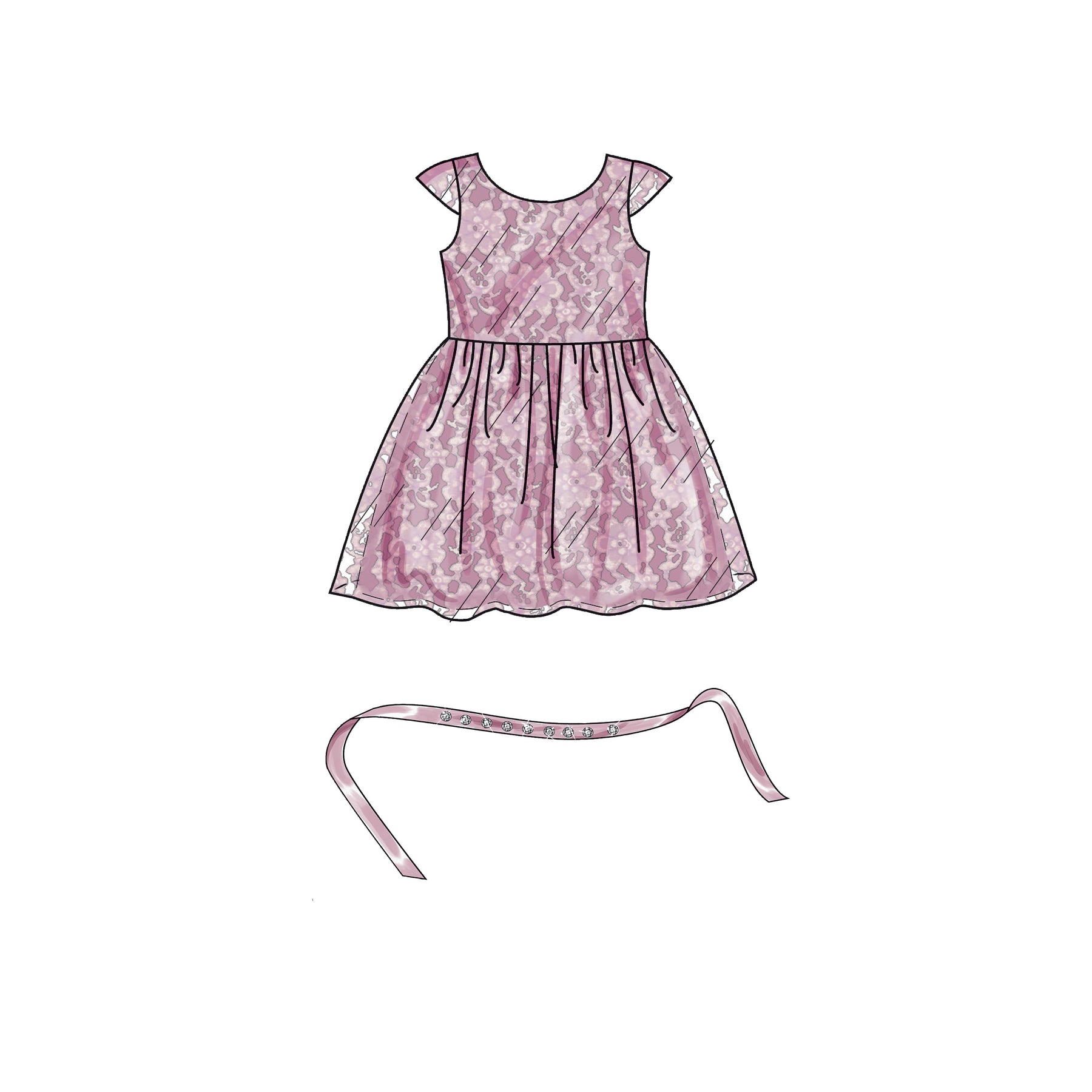 Kinderkleider mit gerafftem Rock welches ein gefüttertes Oberteil haben (Taille oder unterhalb der Taille) und einen Reißverschluss am Rücken.
